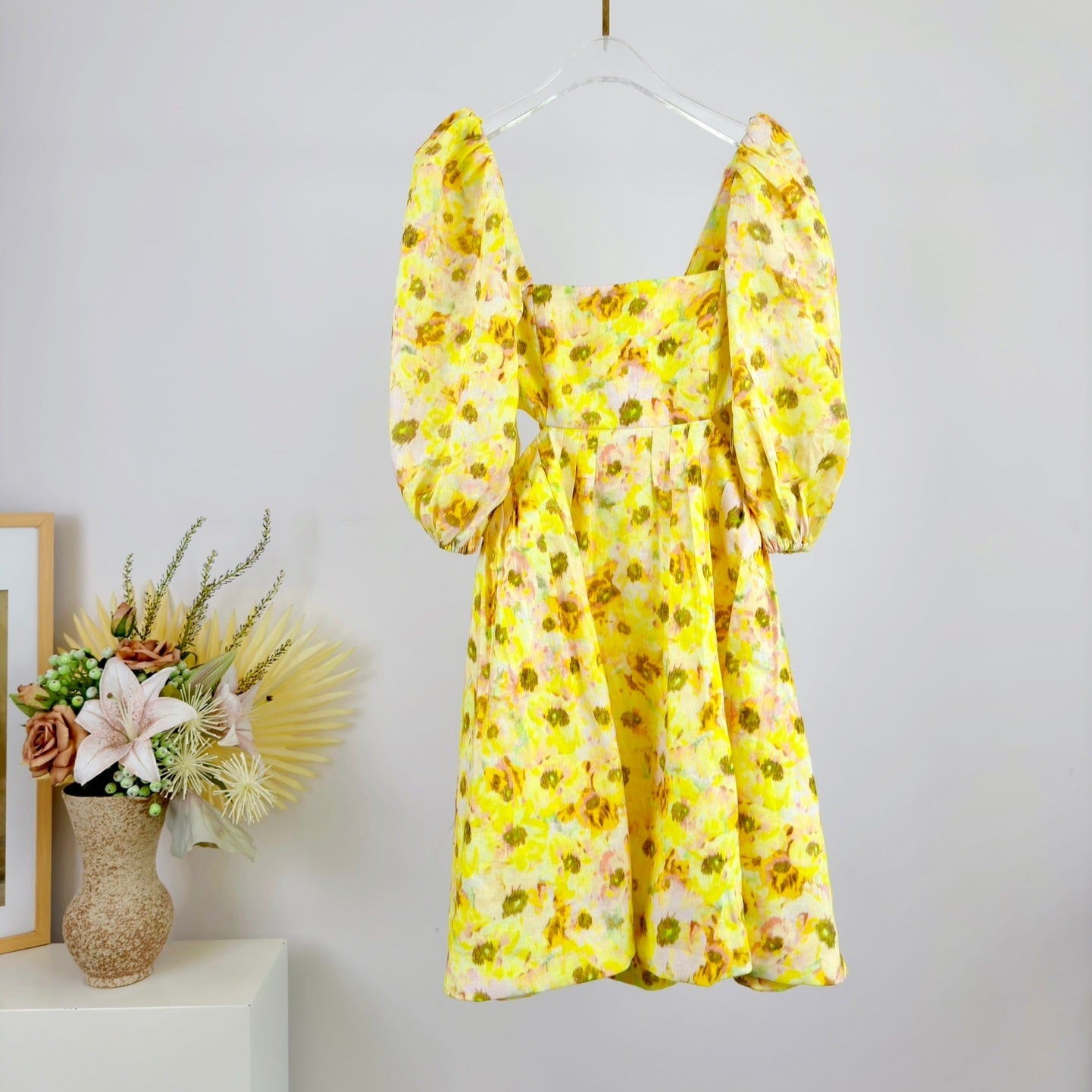 PUFF SLEEVE MINI DRESS 25S IN LINEN 266364