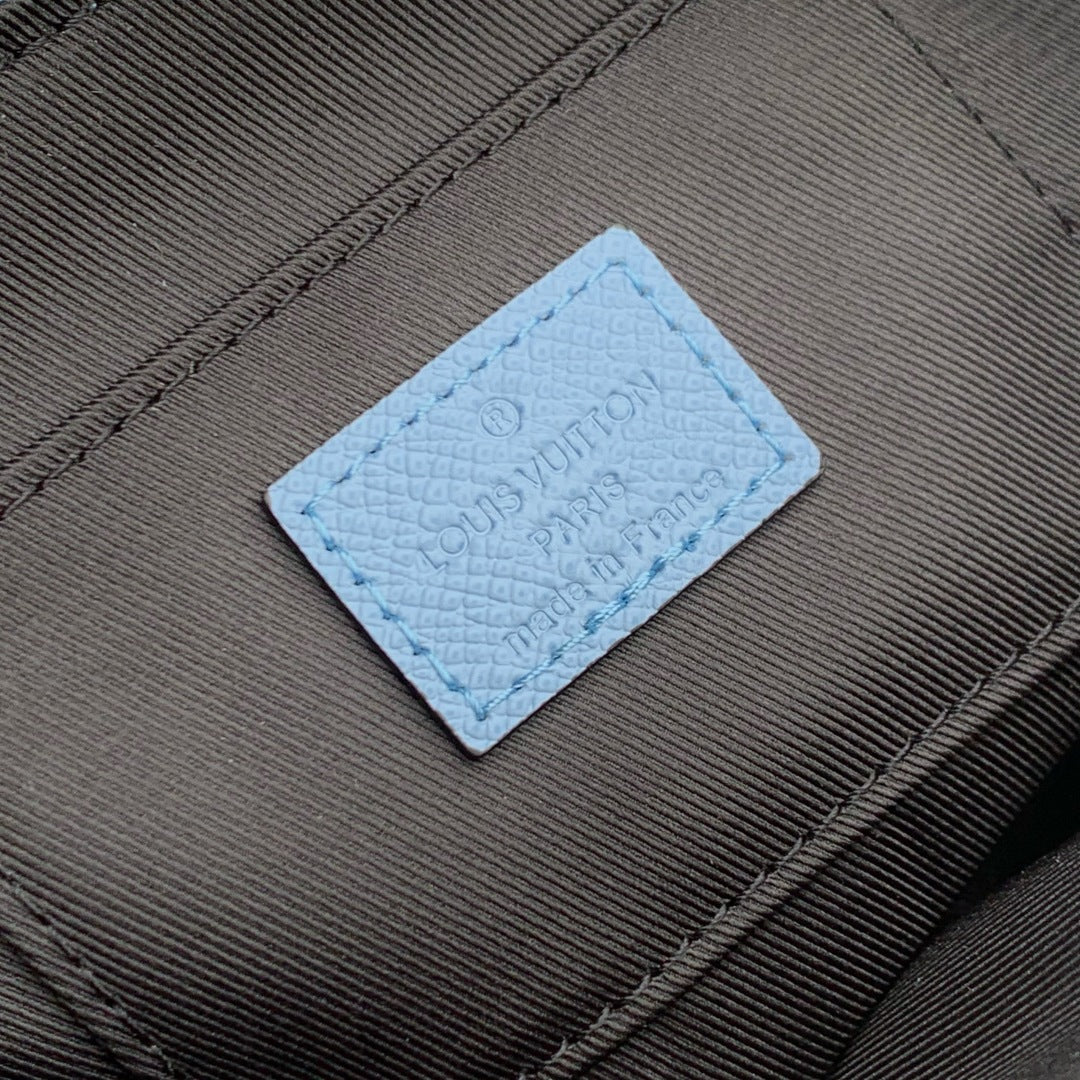 PULSE MESSENGER 22.5 IN BLUE MONOGRAM COATED CANVAS AND CALFSKIN