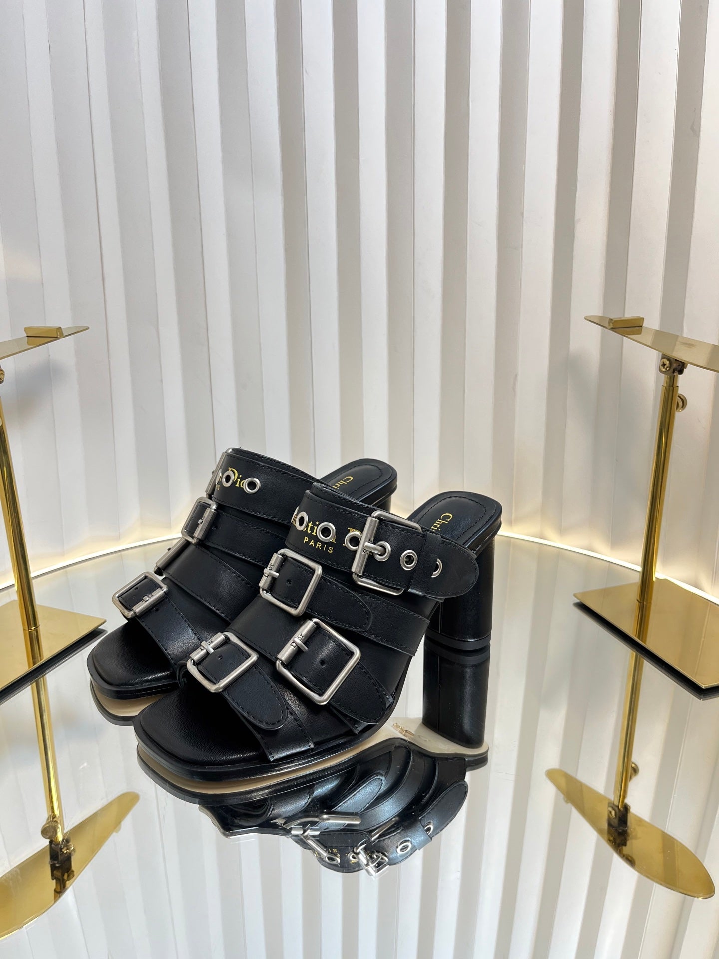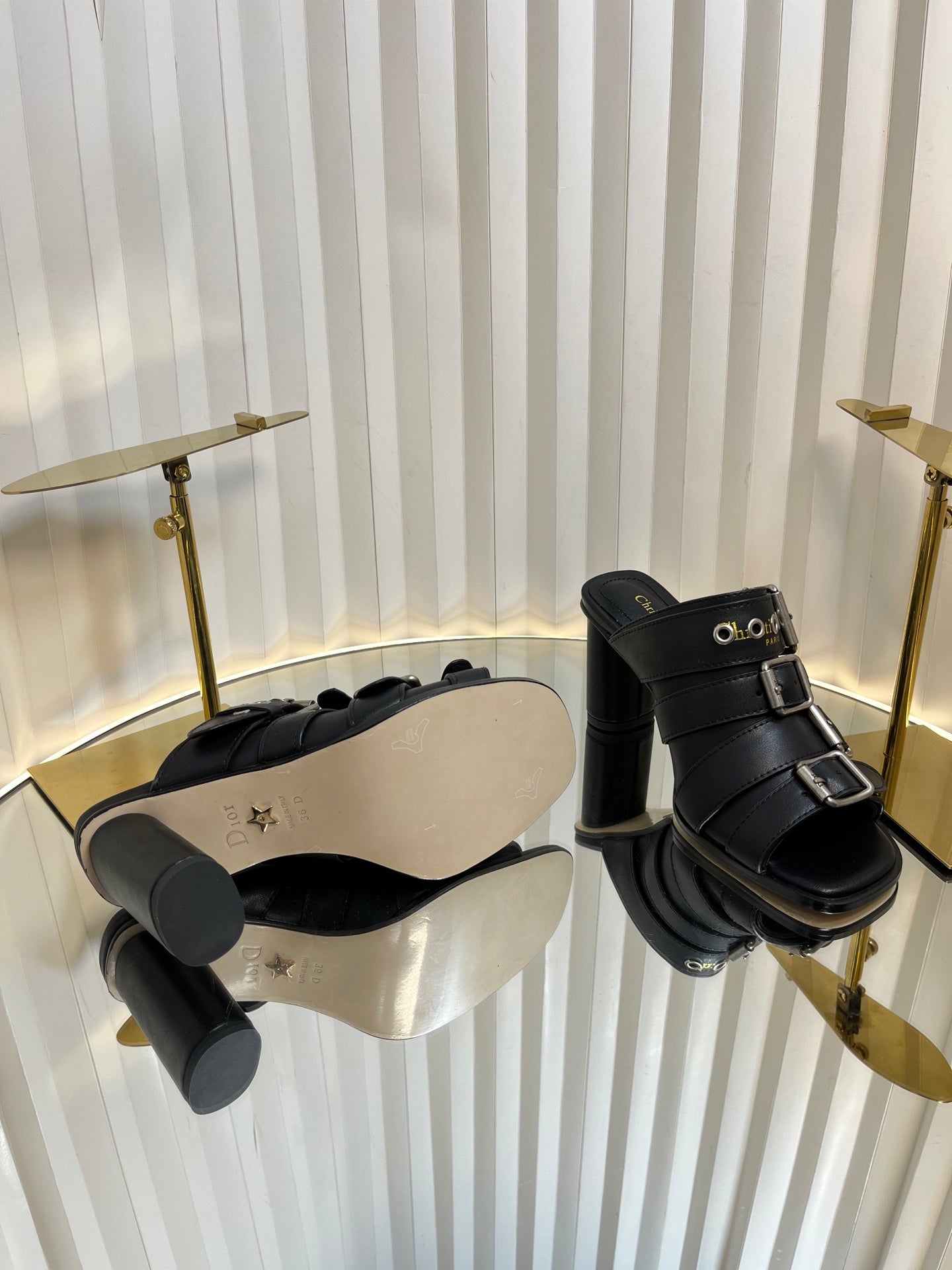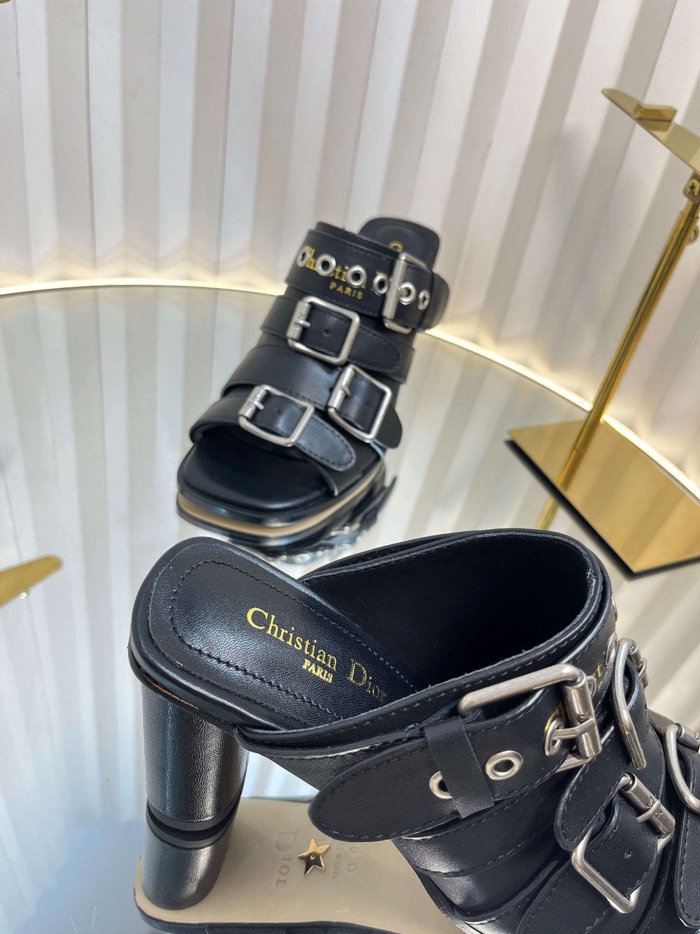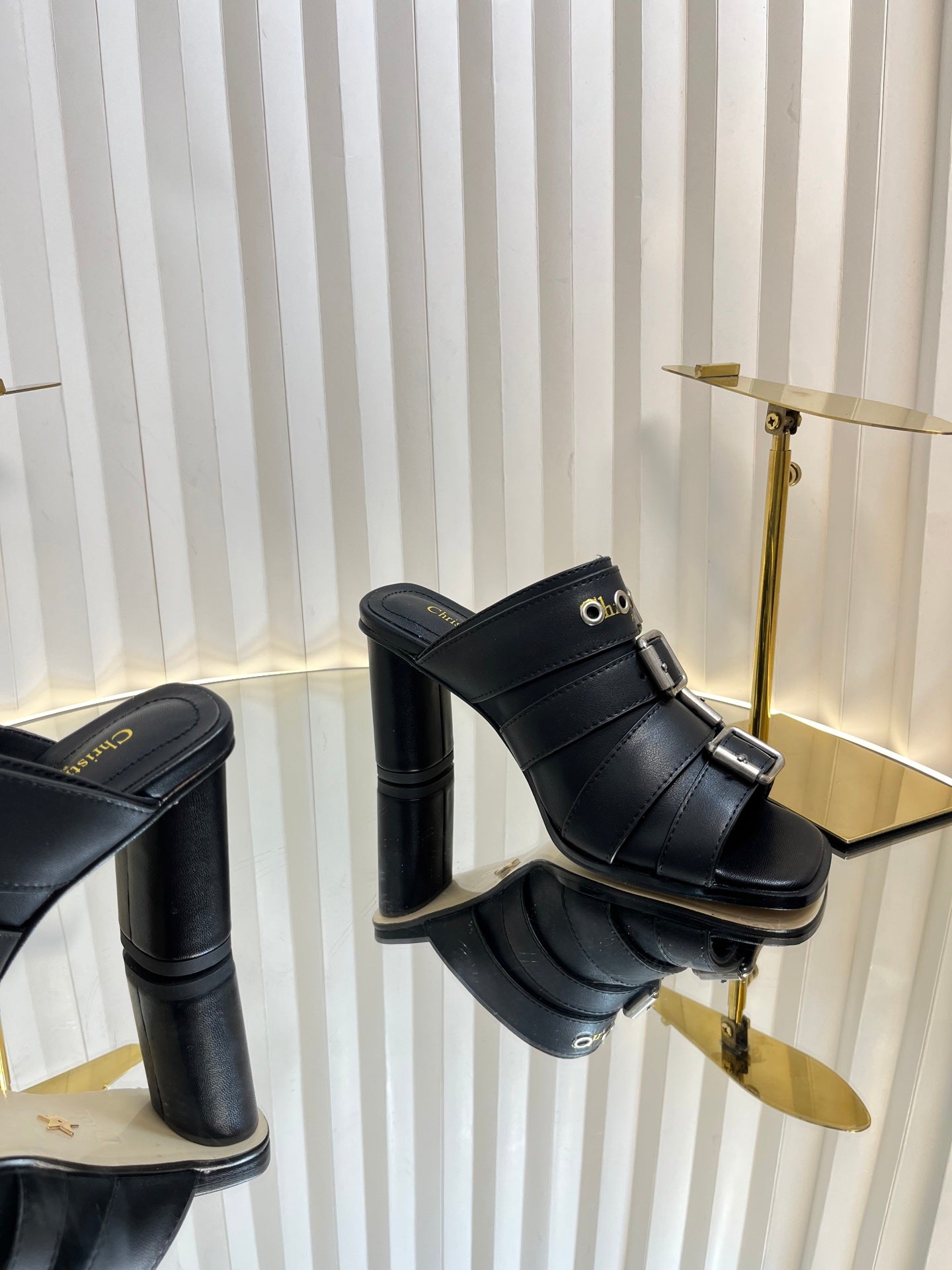 PUNK HEEL SLIDES 25S 80MM IN BLACK CALFSKIN