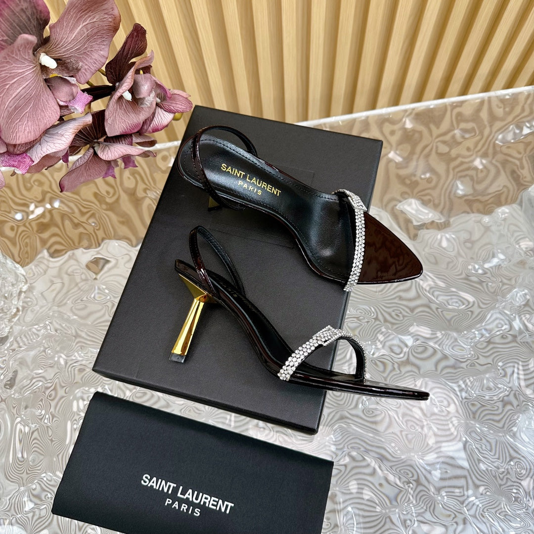 RENDEZ-VOUS SANDALS 70 IN SATIN CREPE BLACK MAROON LEATHER