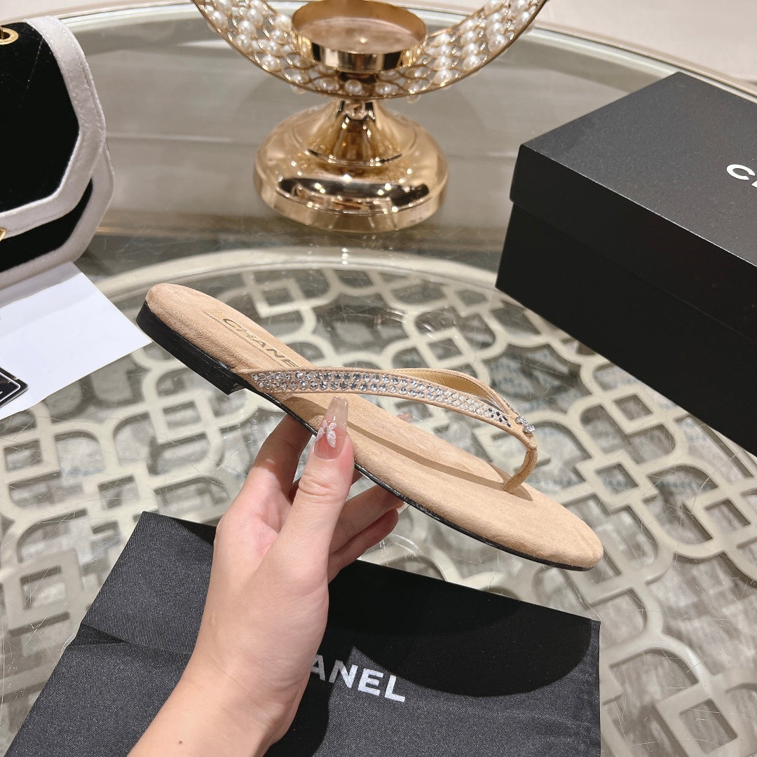 RHINESTONES THONG SANDAL IN SEPIA TAN SUEDE