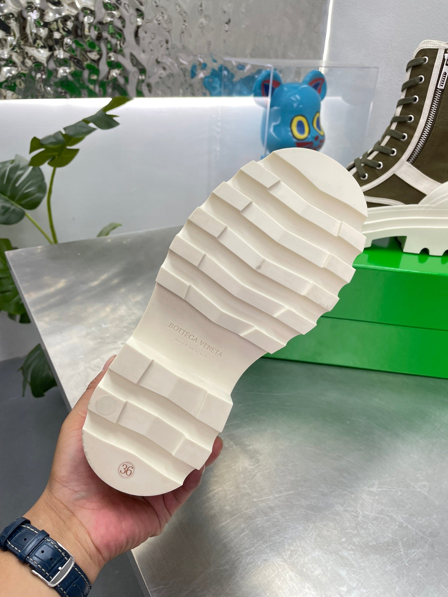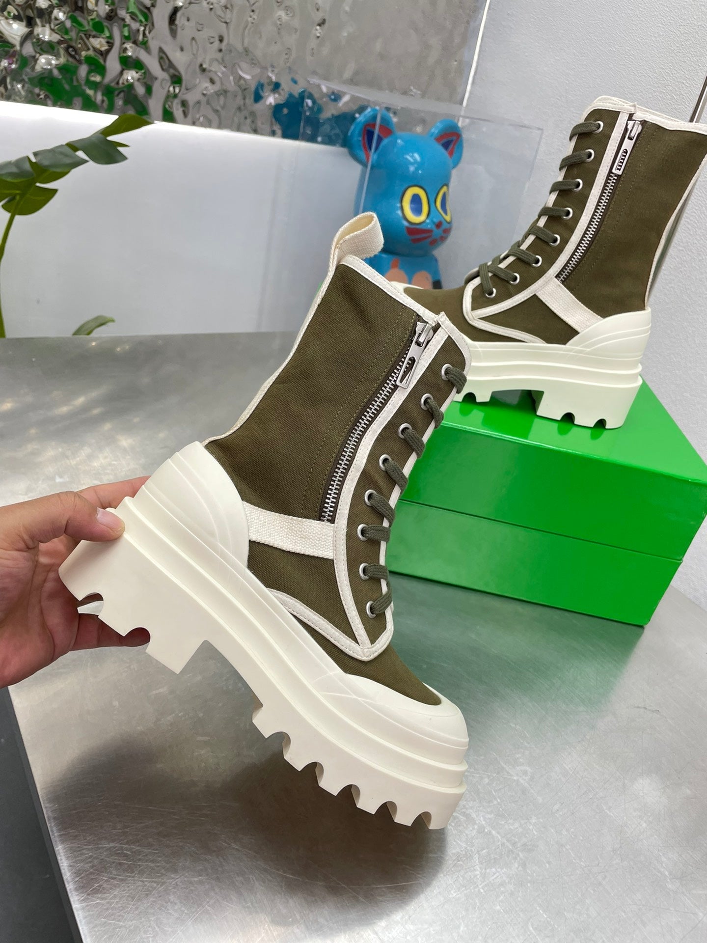 RIBBON BOMBER LACE-UP BOOTS IN OLIVE GREEN MIX WHITE CANVAS