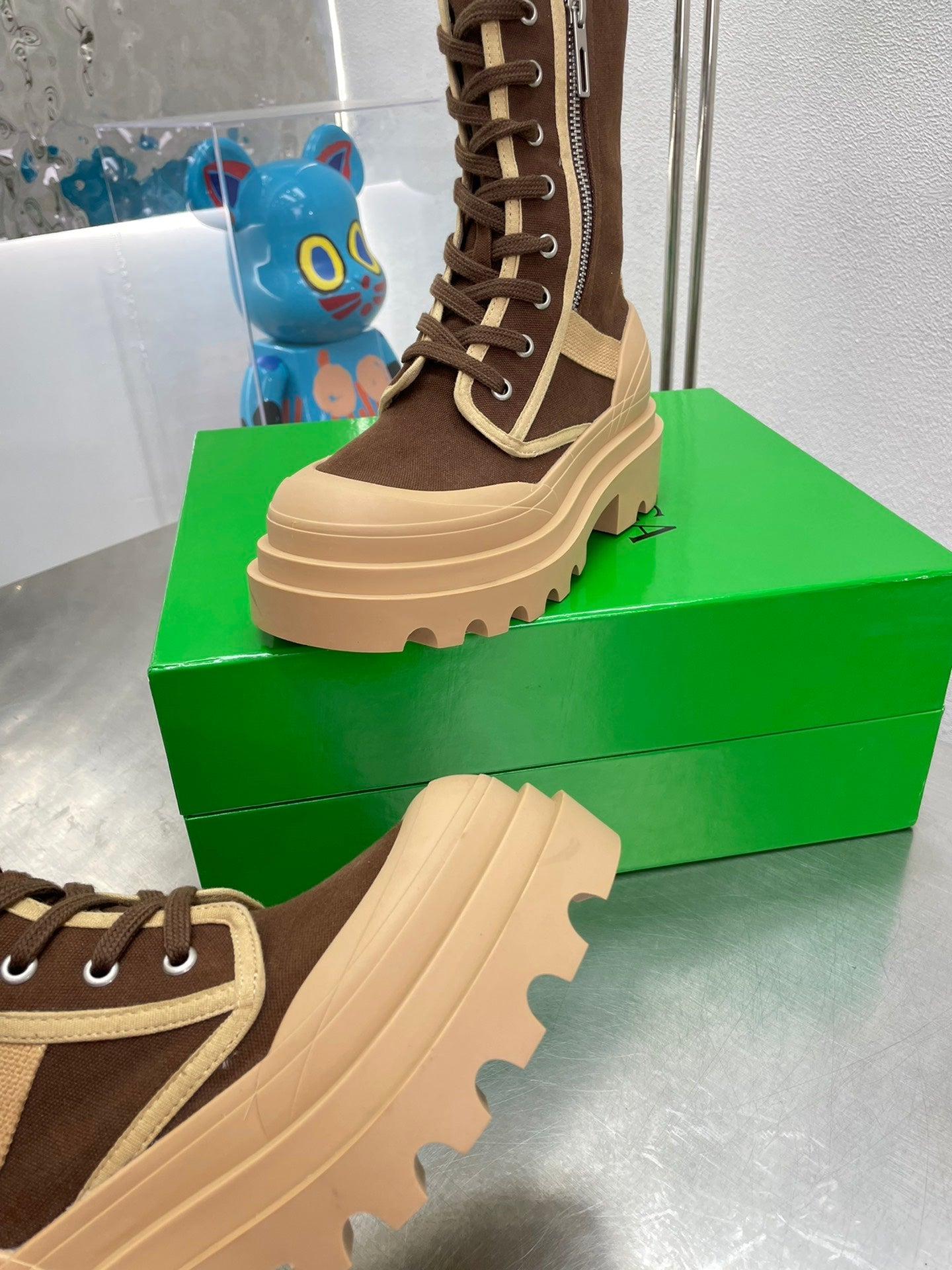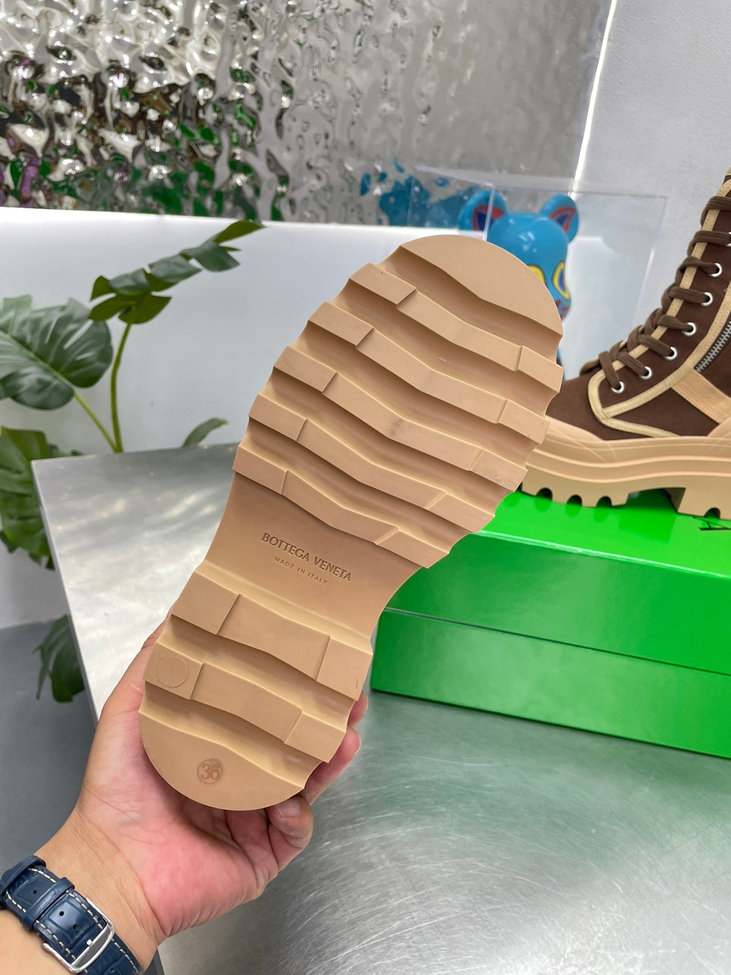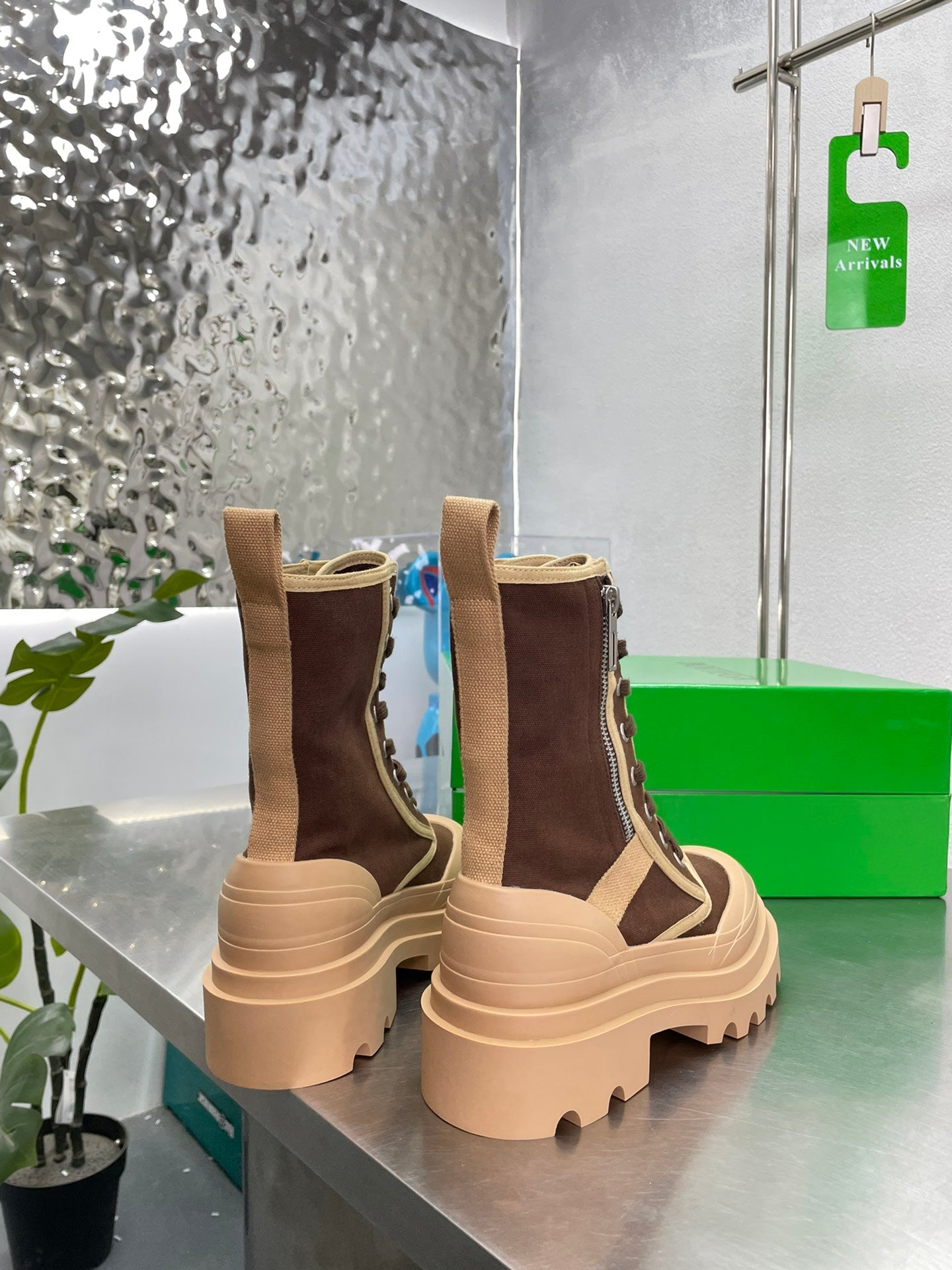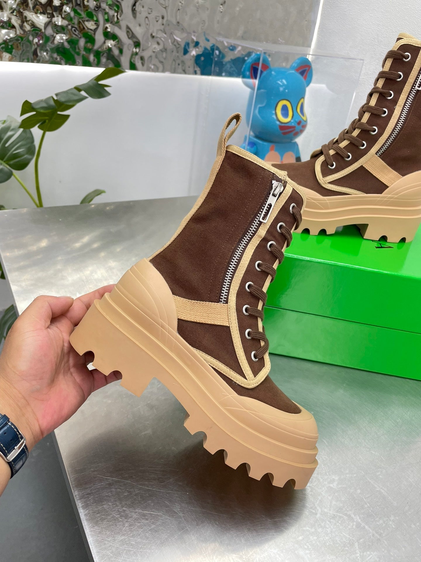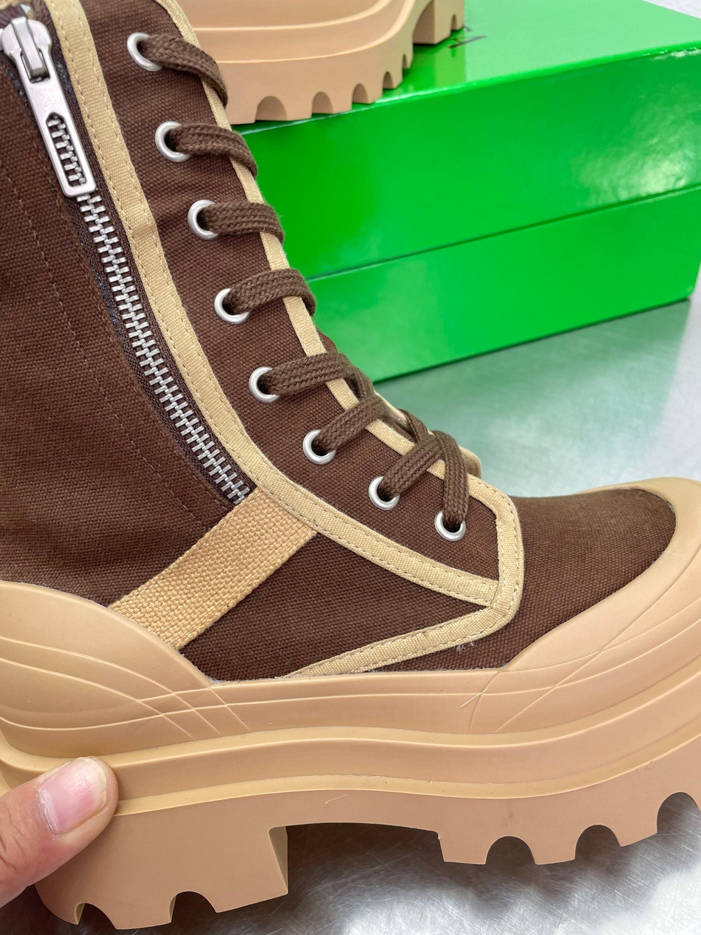 RIBBON BOMBER LACE-UP BOOTS IN RUSSET MIX PEANUT BROWN CANVAS