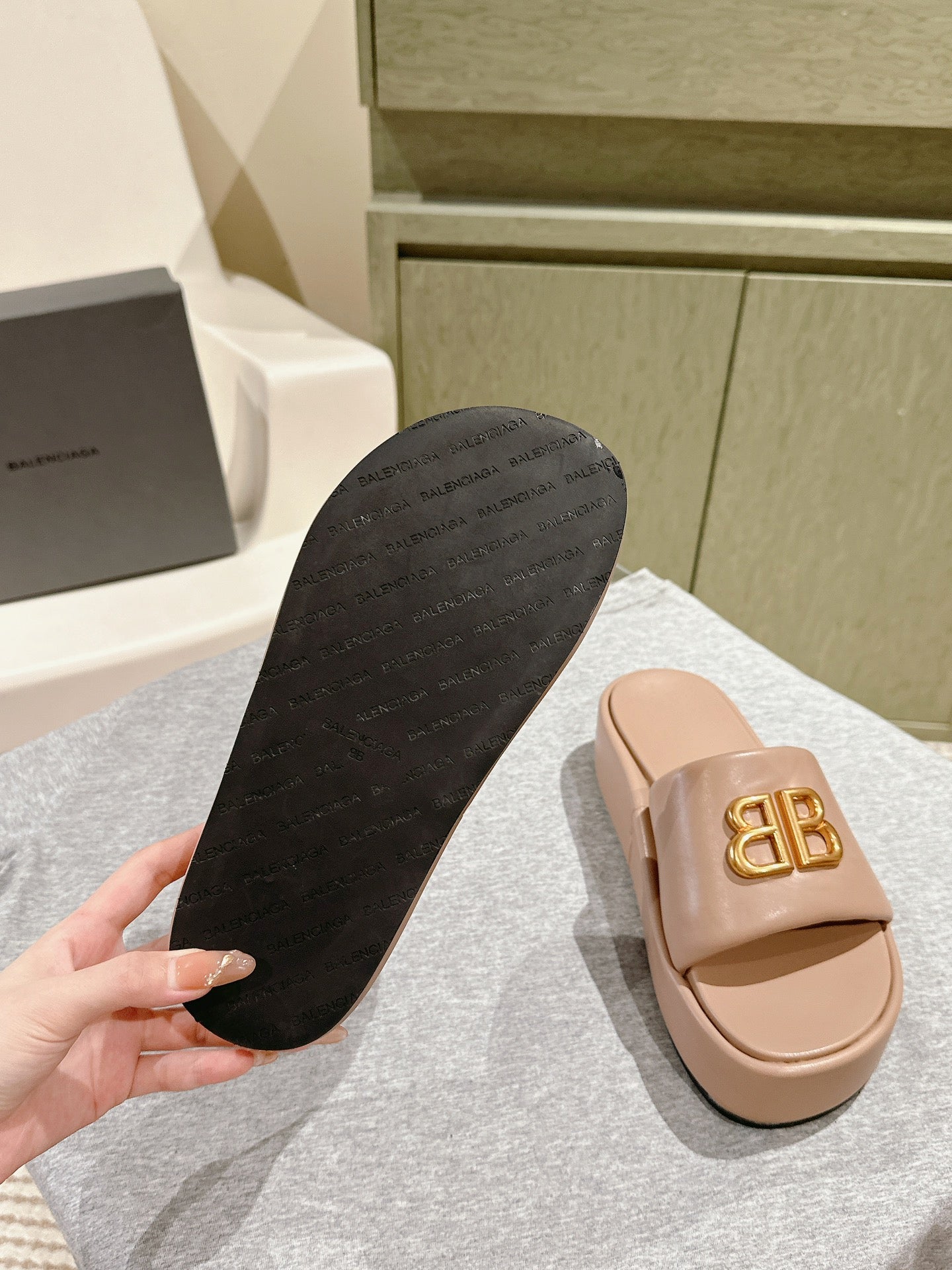 RISE SANDALS IN BEIGE SHINY LAMBSKIN GOLD BUCKLE
