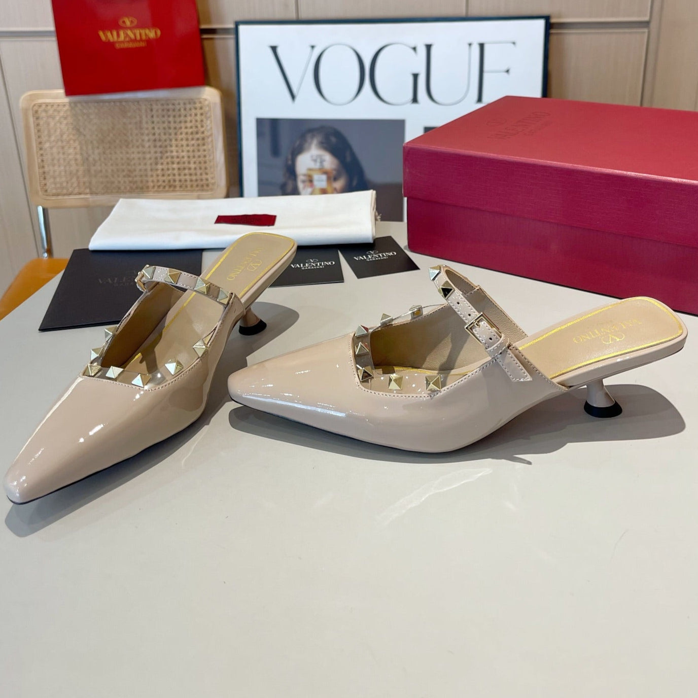 ROCKSTUD CAGED MULES 5 CM IN BISQUE BEIGE CALFSKIN