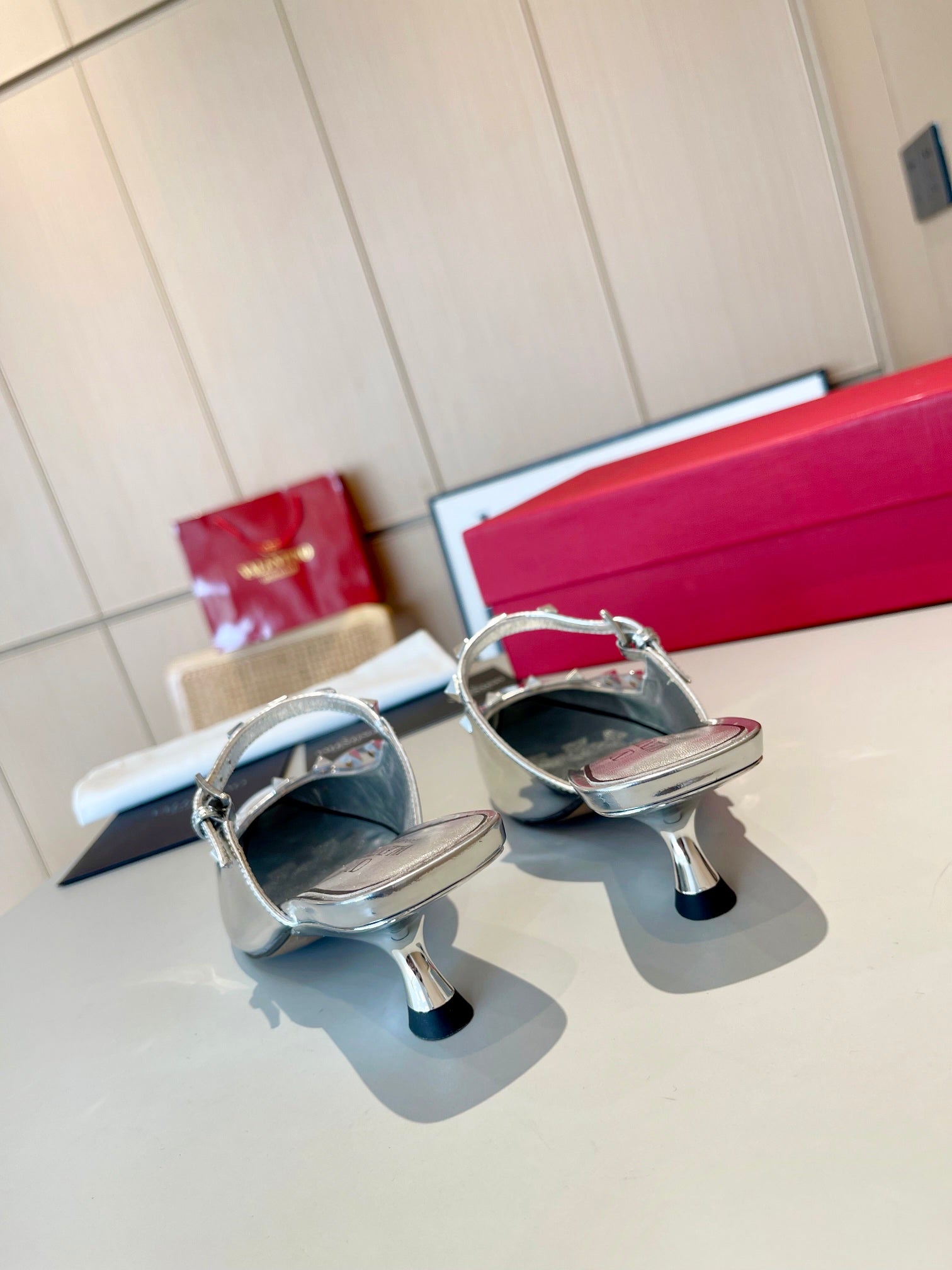 ROCKSTUD CAGED MULES 5 CM IN SILVER CALFSKIN