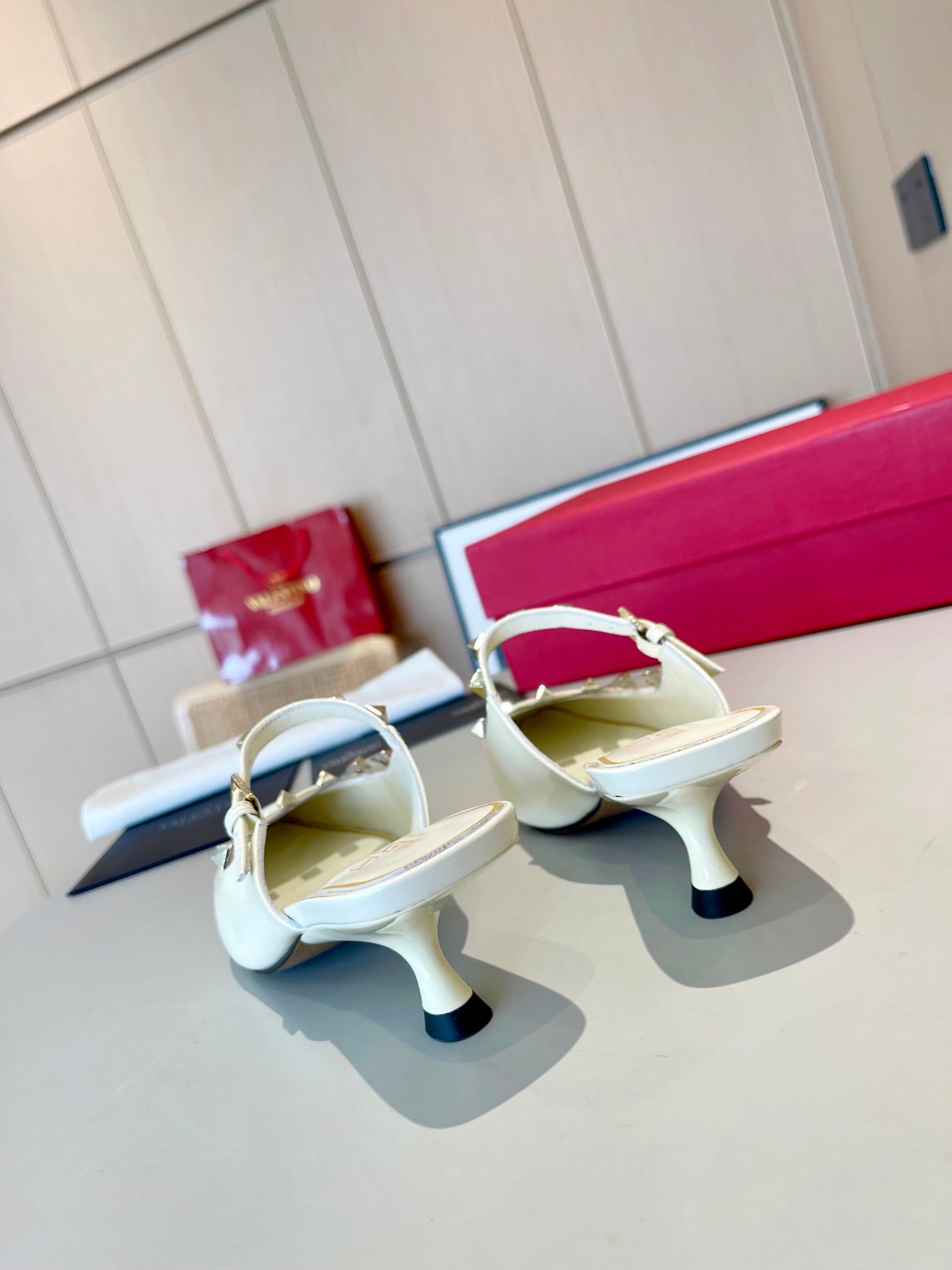 ROCKSTUD CAGED MULES 5 CM IN WHITE CALFSKIN