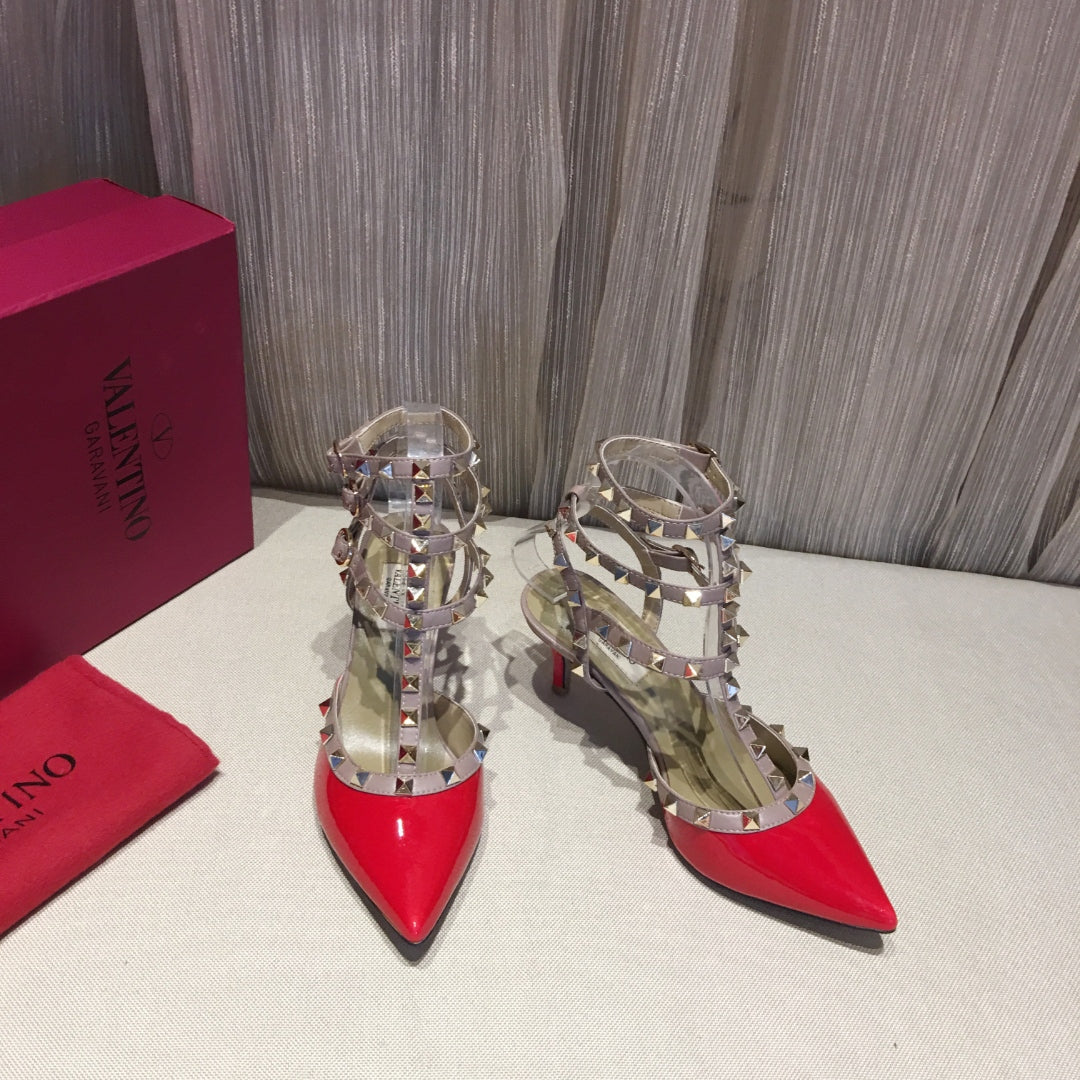 ROCKSTUD CAGED PUMP 65MM IN RUBY RED MIX LIGHT PINK PATENT CALFSKIN