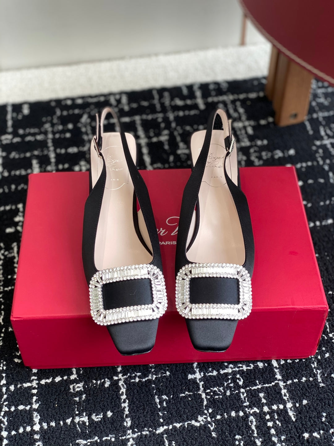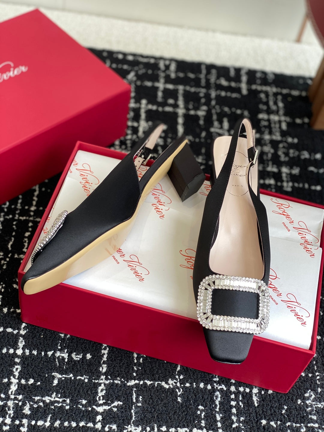 ROGER VIVIER 25S VIVIER SLINGBACK 45MM IN BLACK SILK EMBELLISHED CRYSTALS