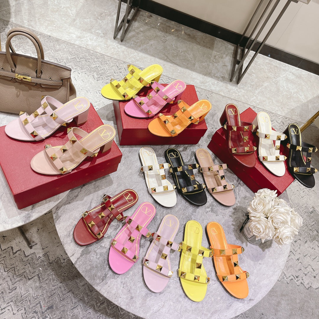 ROMAN STUD LIGHT PINK CALFSKIN FLAT SLIDE SANDAL 25 MM