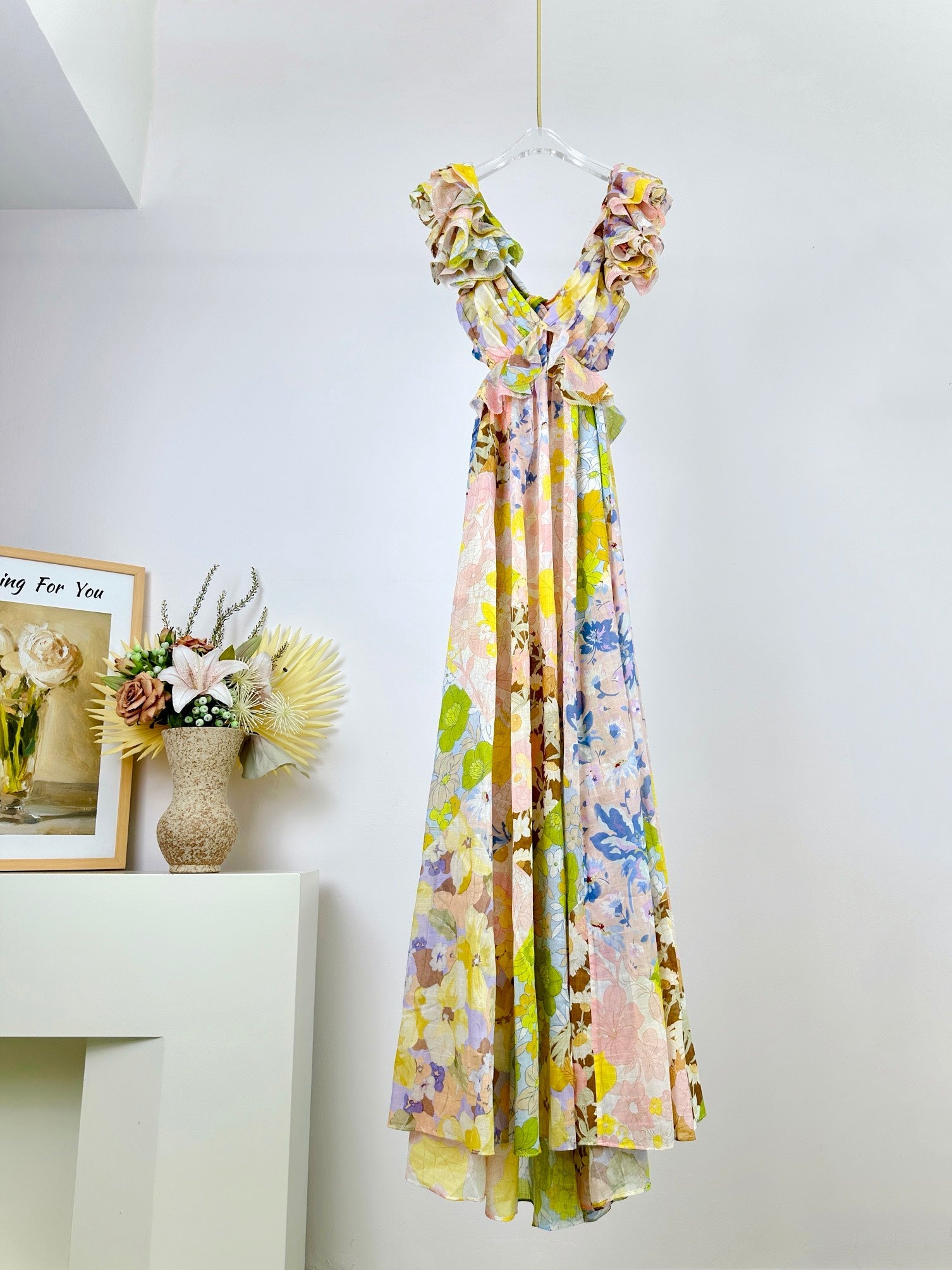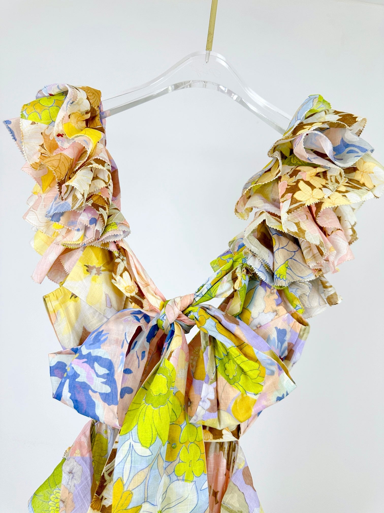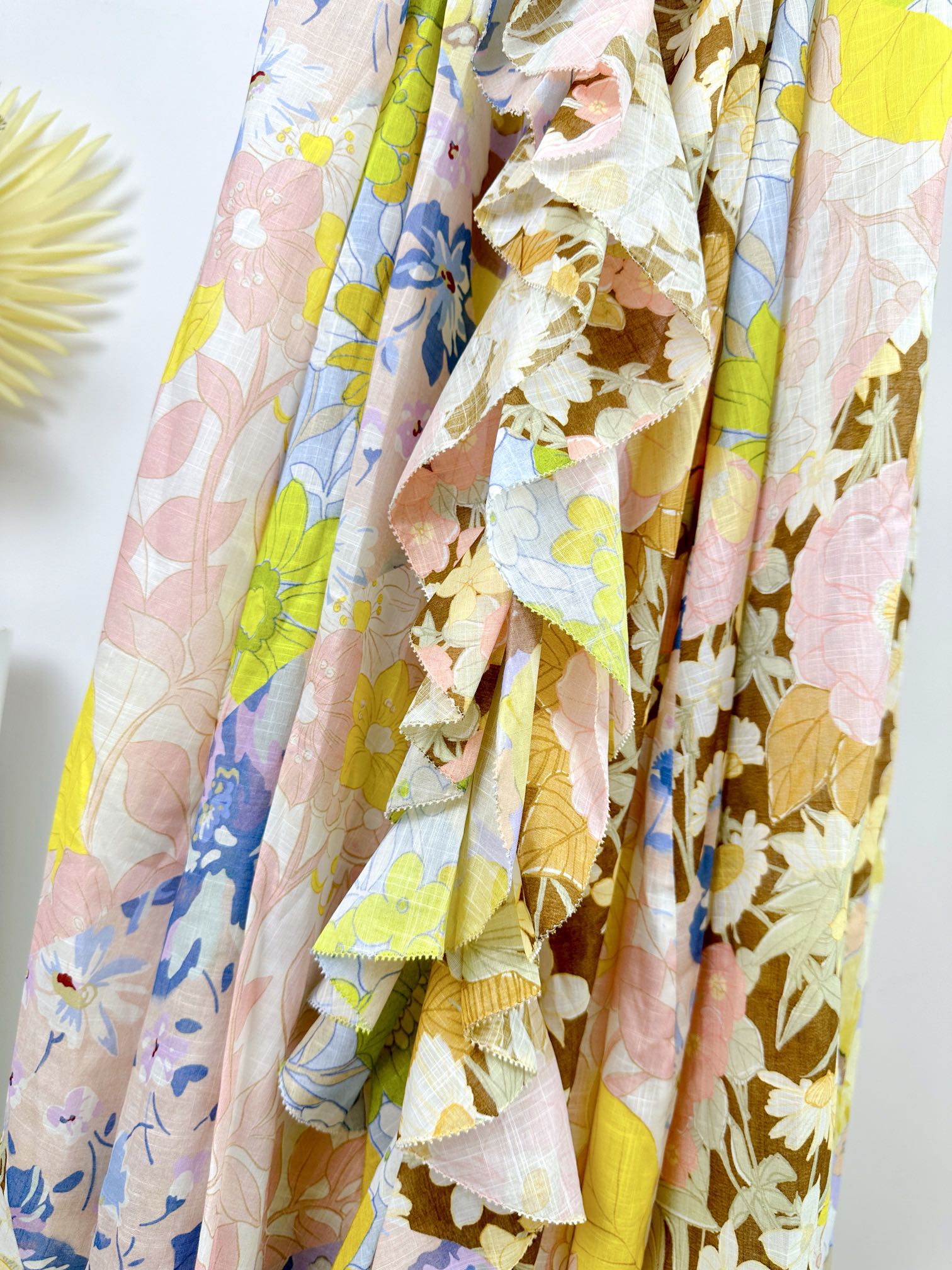 RUFFLED-SLEEVE PRINTED MIDI DRESS 254607