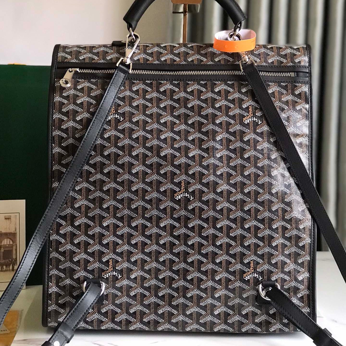 SAINT LÉGER BACKPACK 35 IN BROWN MIX BALCK GOYARDINE CANVAS AND CALFSKIN WITH CARTOON PATCH