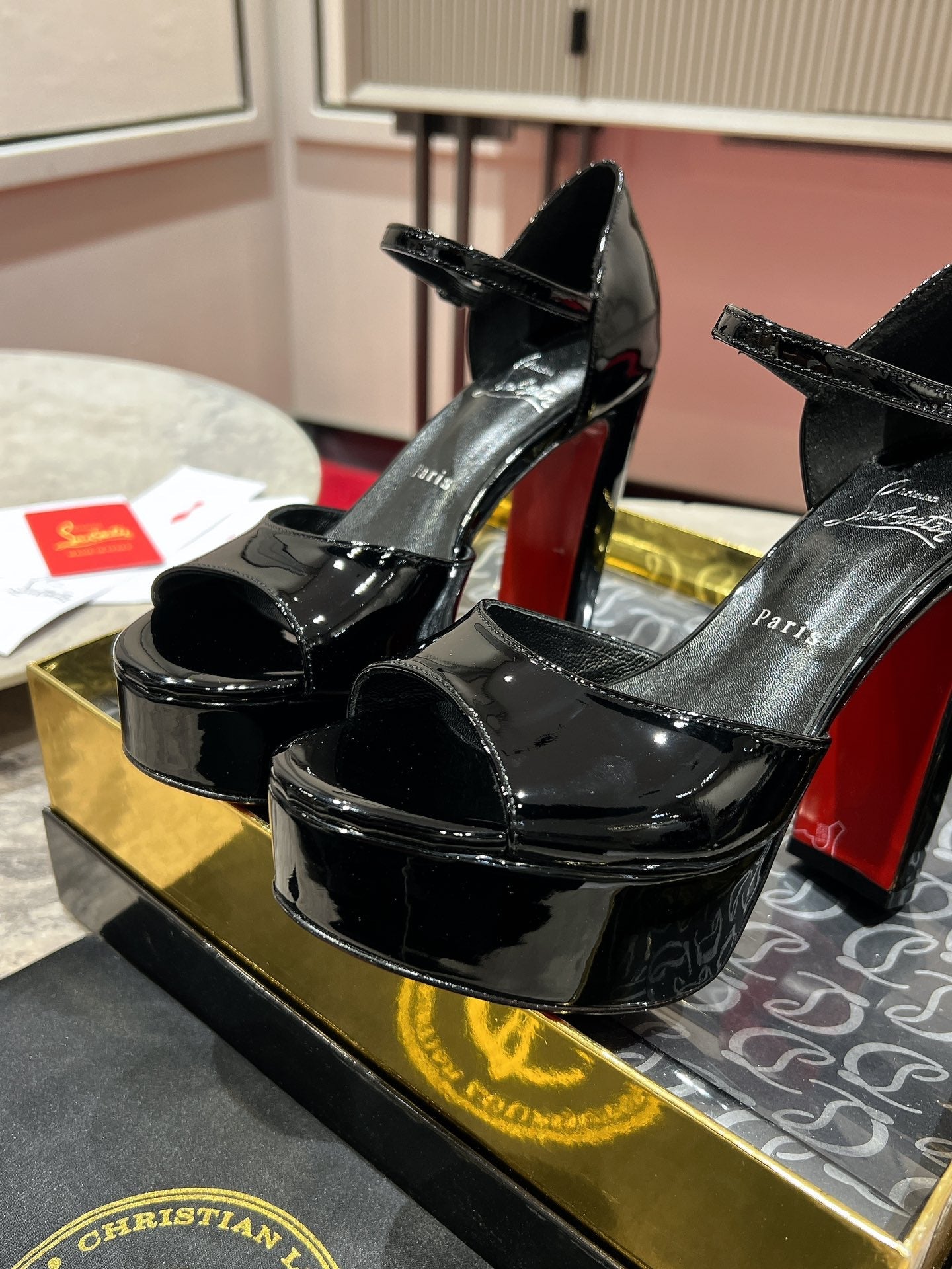 SANDALOO PLATFORM SANDALS 130MM IN BLACK PATENT CALFSKIN