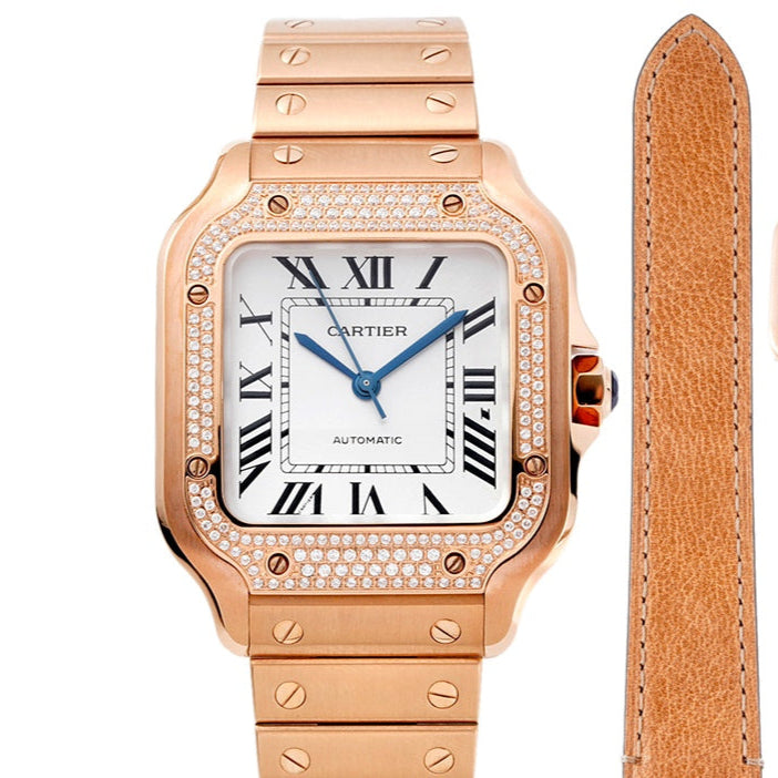 SANTOS MEDIUM MODEL DE CARTIER WATCH ROSE GOLD CASE WITH CRYSTALS