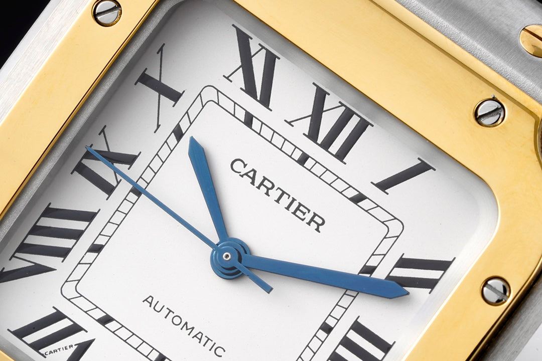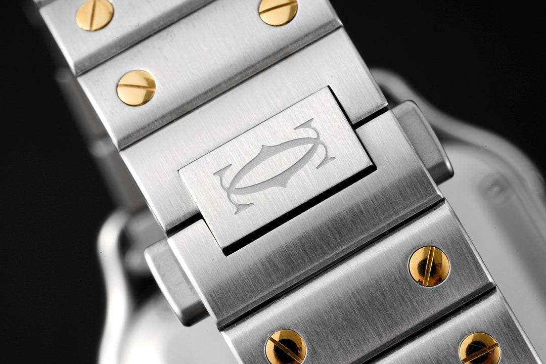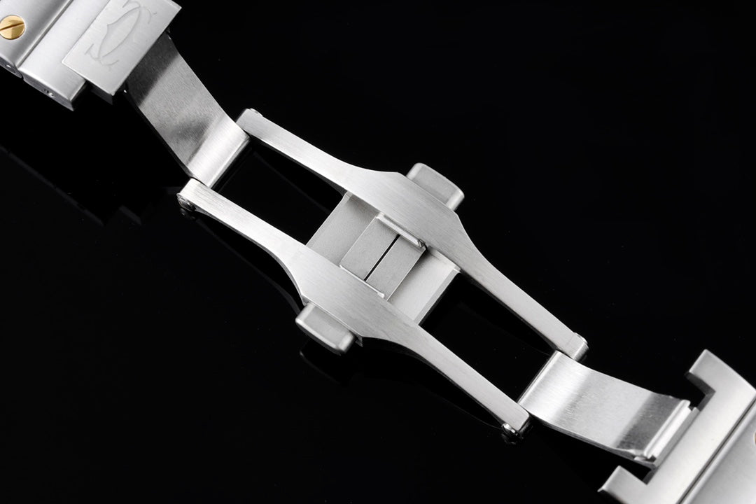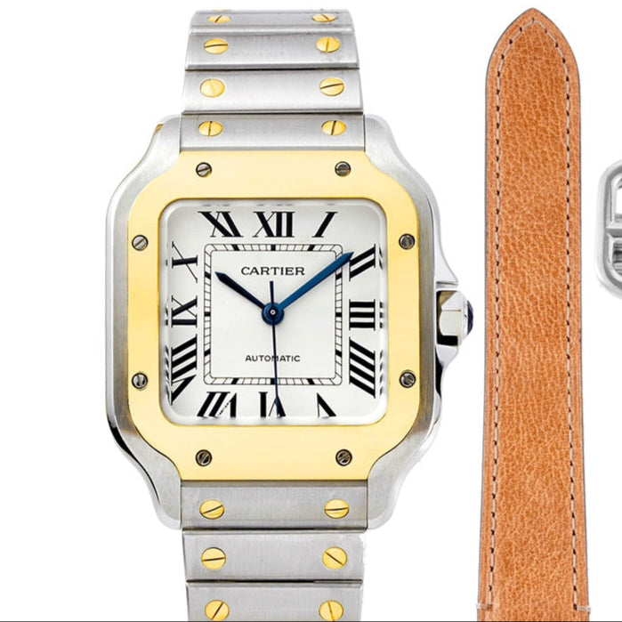 SANTOS MEDIUM MODEL DE CARTIER WATCH SILVER AND GOLD CASE WITH CRYSTALS