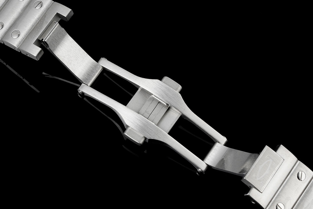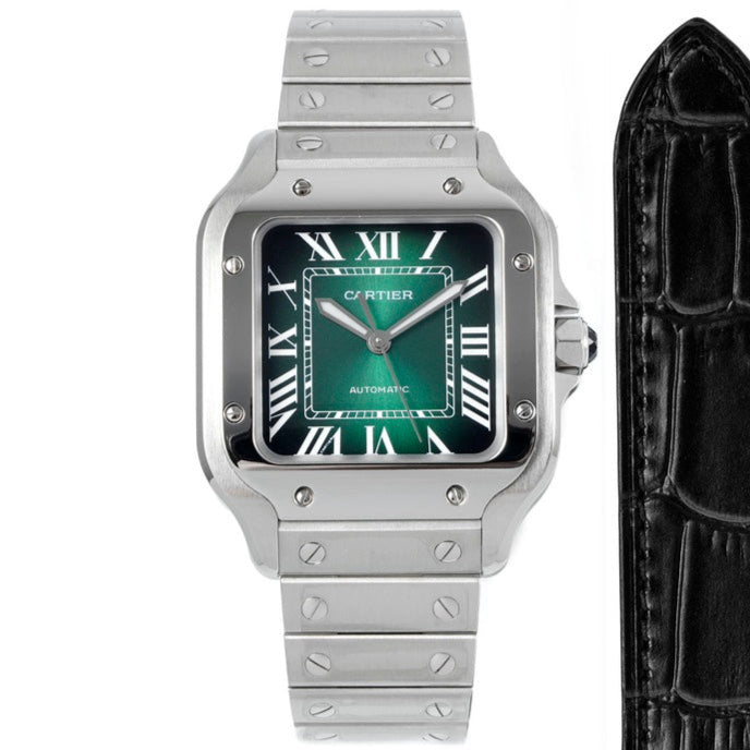 SANTOS MEDIUM MODEL DE CARTIER WATCH SILVER CASE WITH GREEN FOREST DIAL