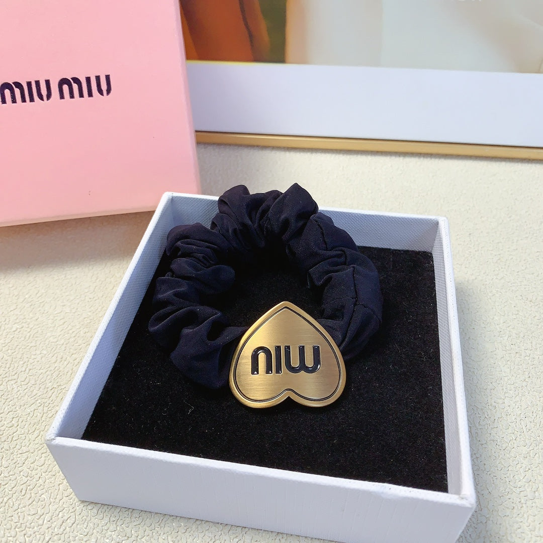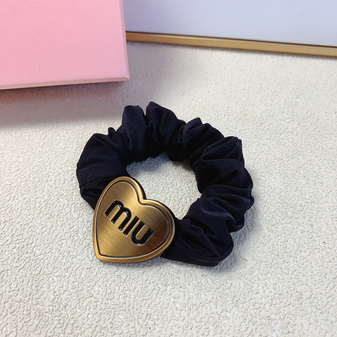 SCRUNCHIE WITH HEART ICON IN BLACK SPANDEX FABRIC 397152