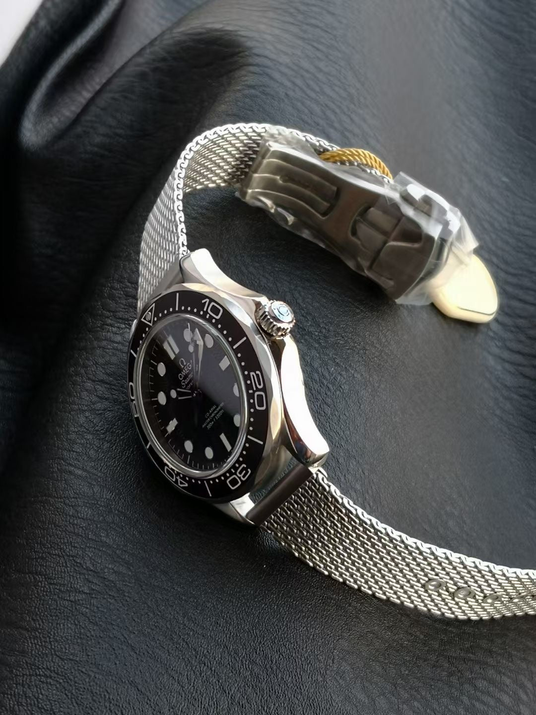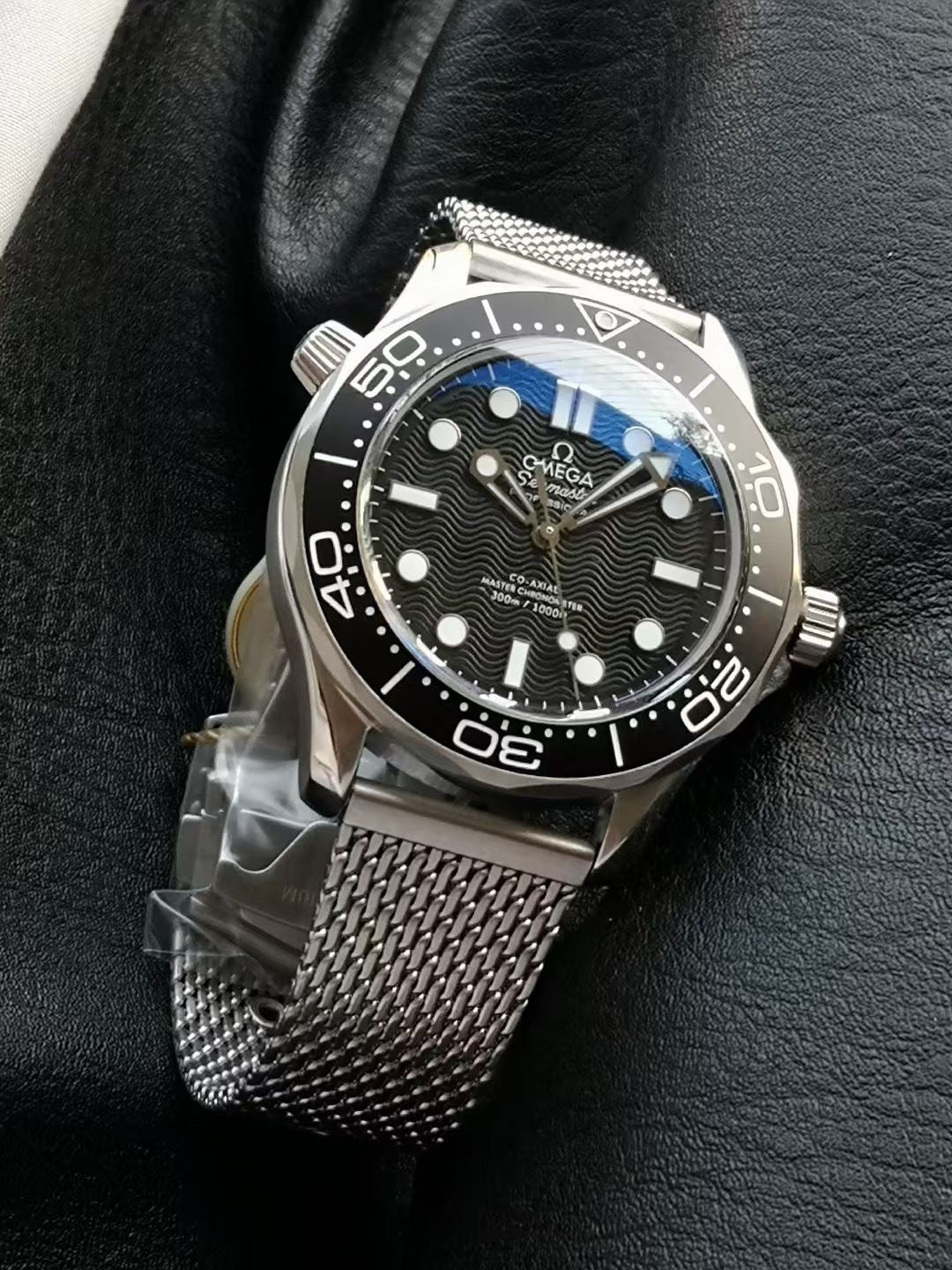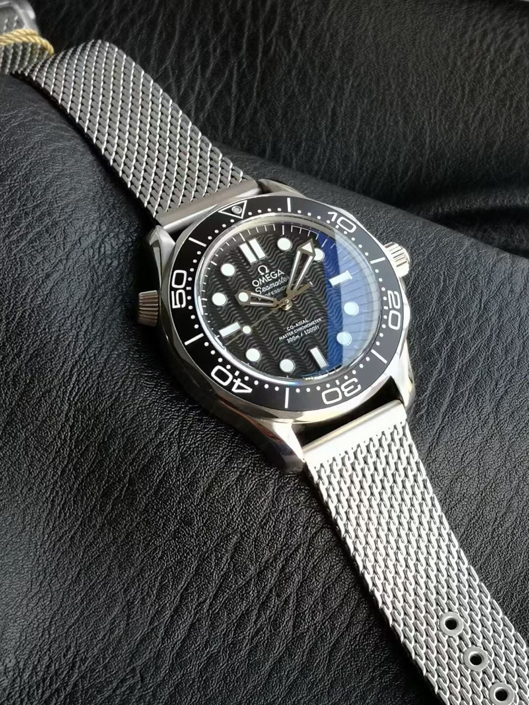 SEAMASTER DIVER 300M SILVER CASE AND BLACK DIAL WITH BRUSHED MESH BRACELET WITH CLASP