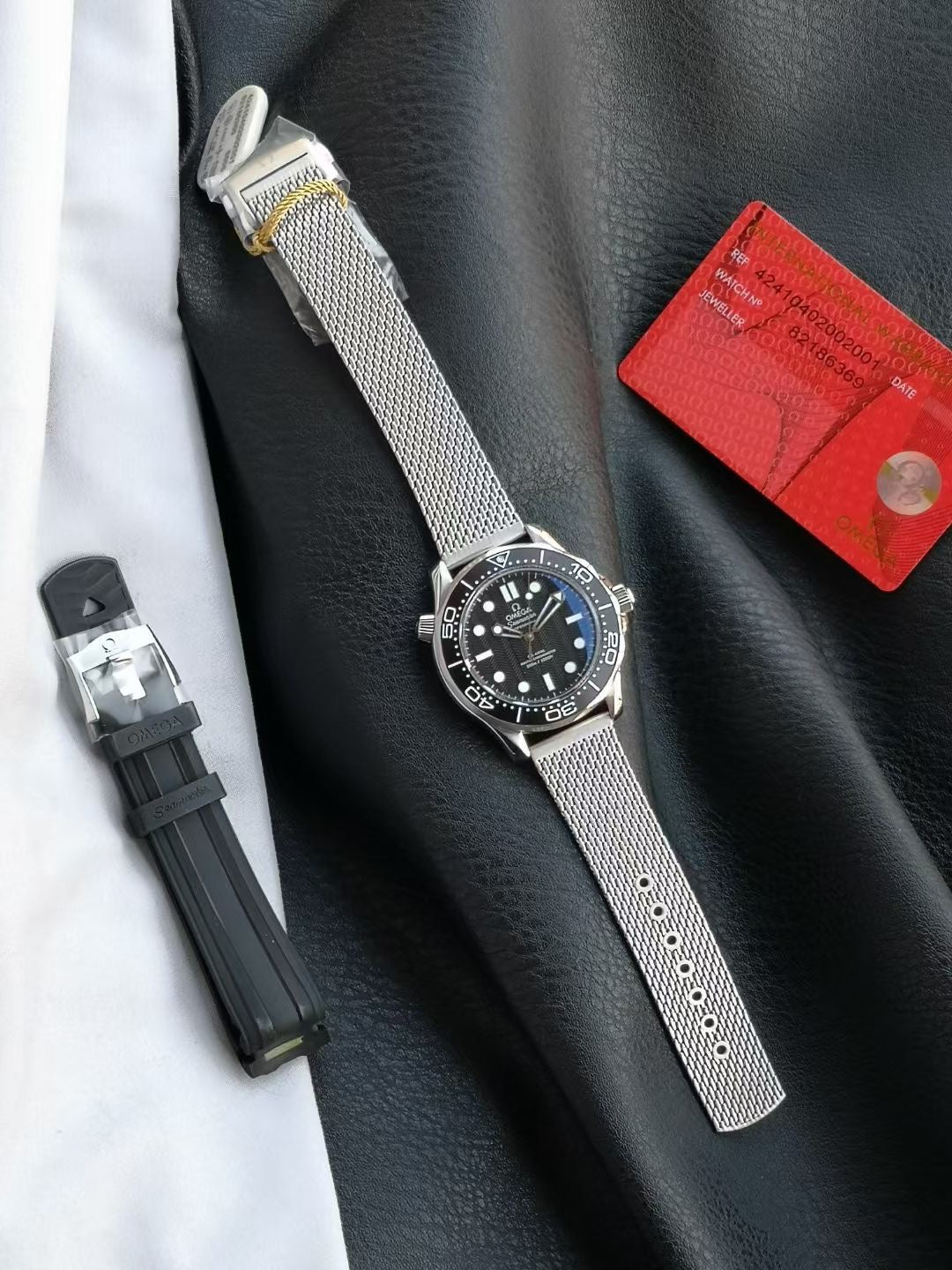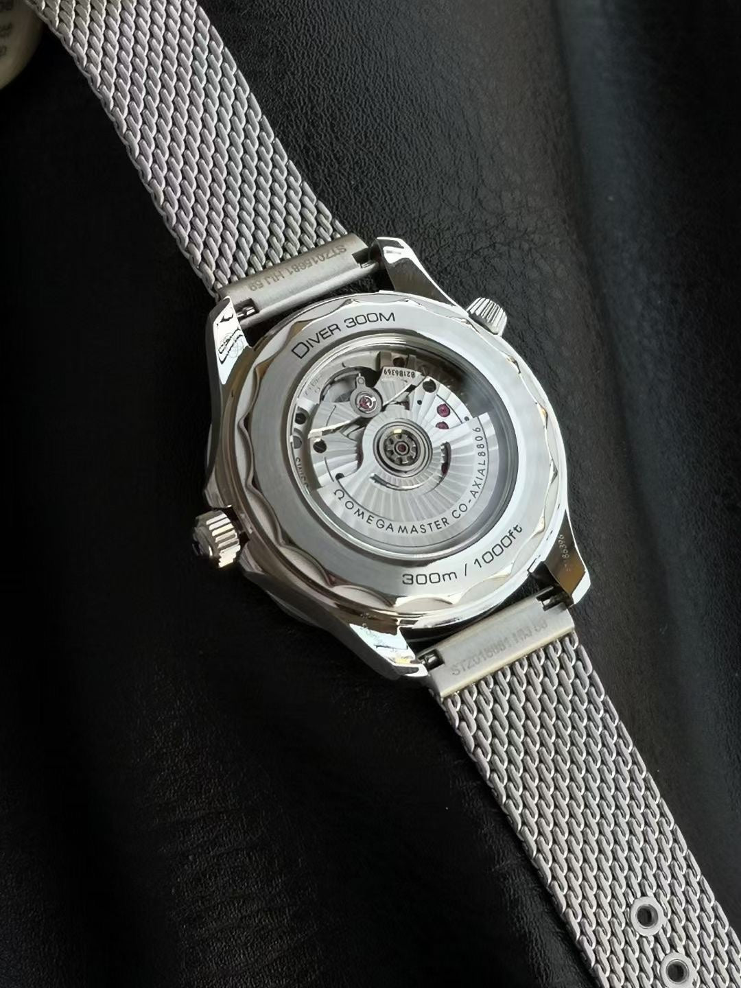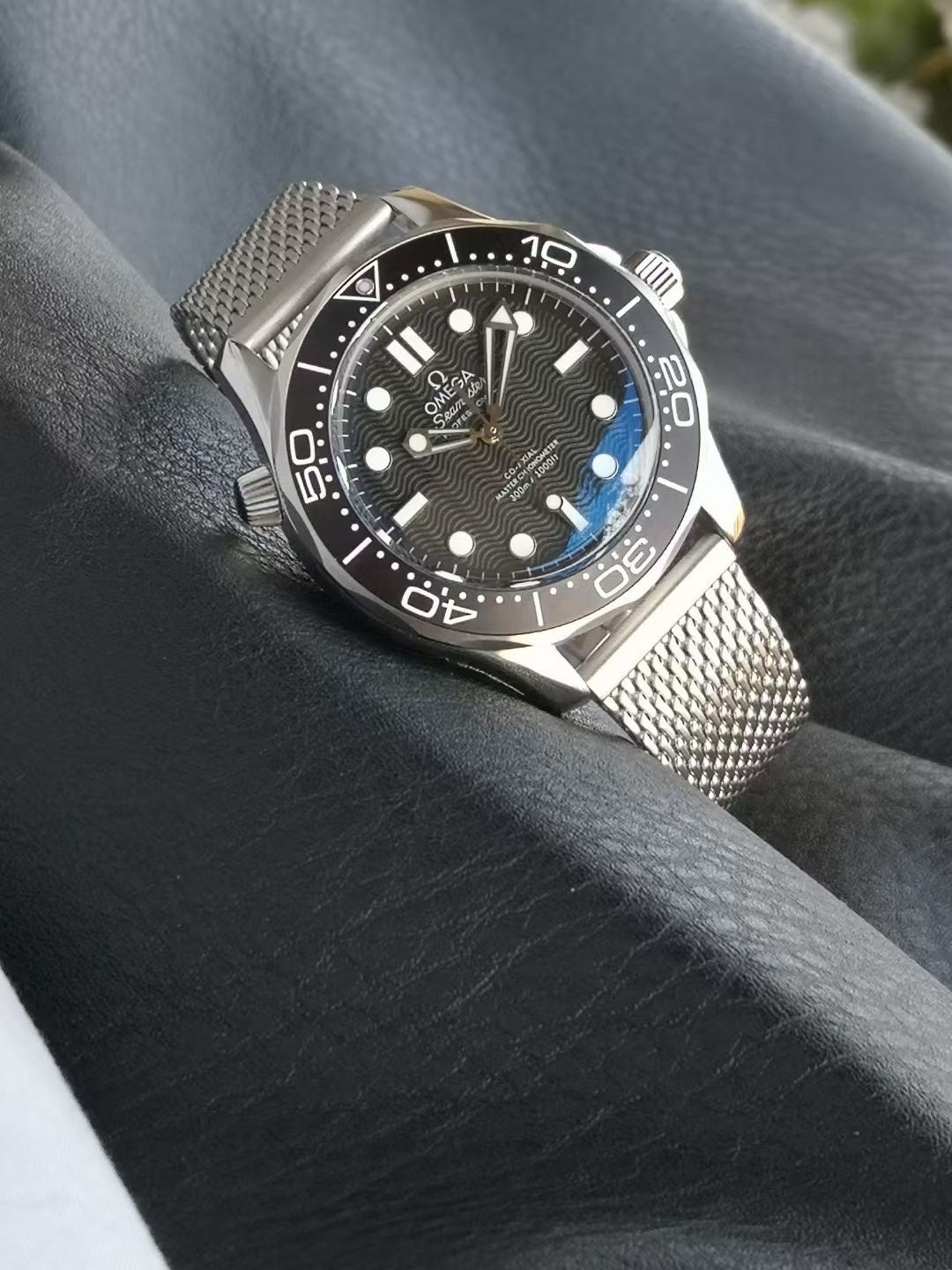 SEAMASTER DIVER 300M SILVER CASE AND BLACK DIAL WITH BRUSHED MESH BRACELET WITH CLASP
