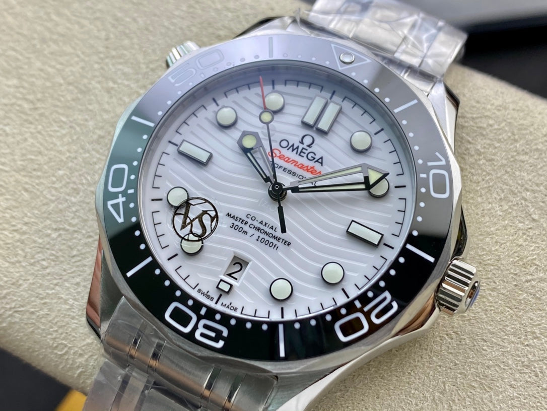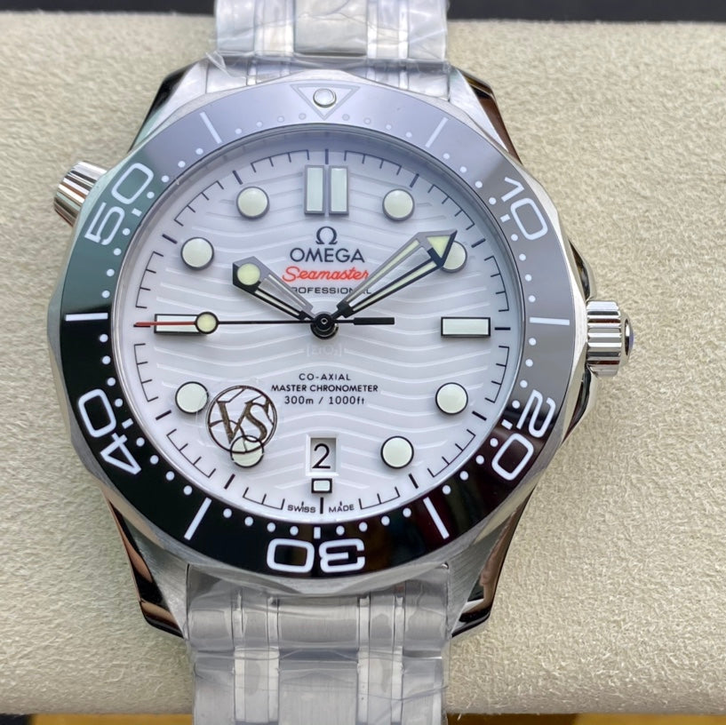 SEAMASTER DIVER 300M SILVER CASE AND WHITE DIAL BLACK CERAMIC