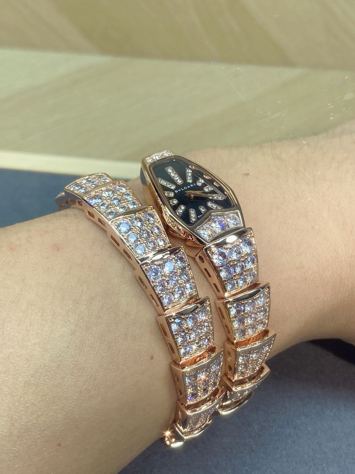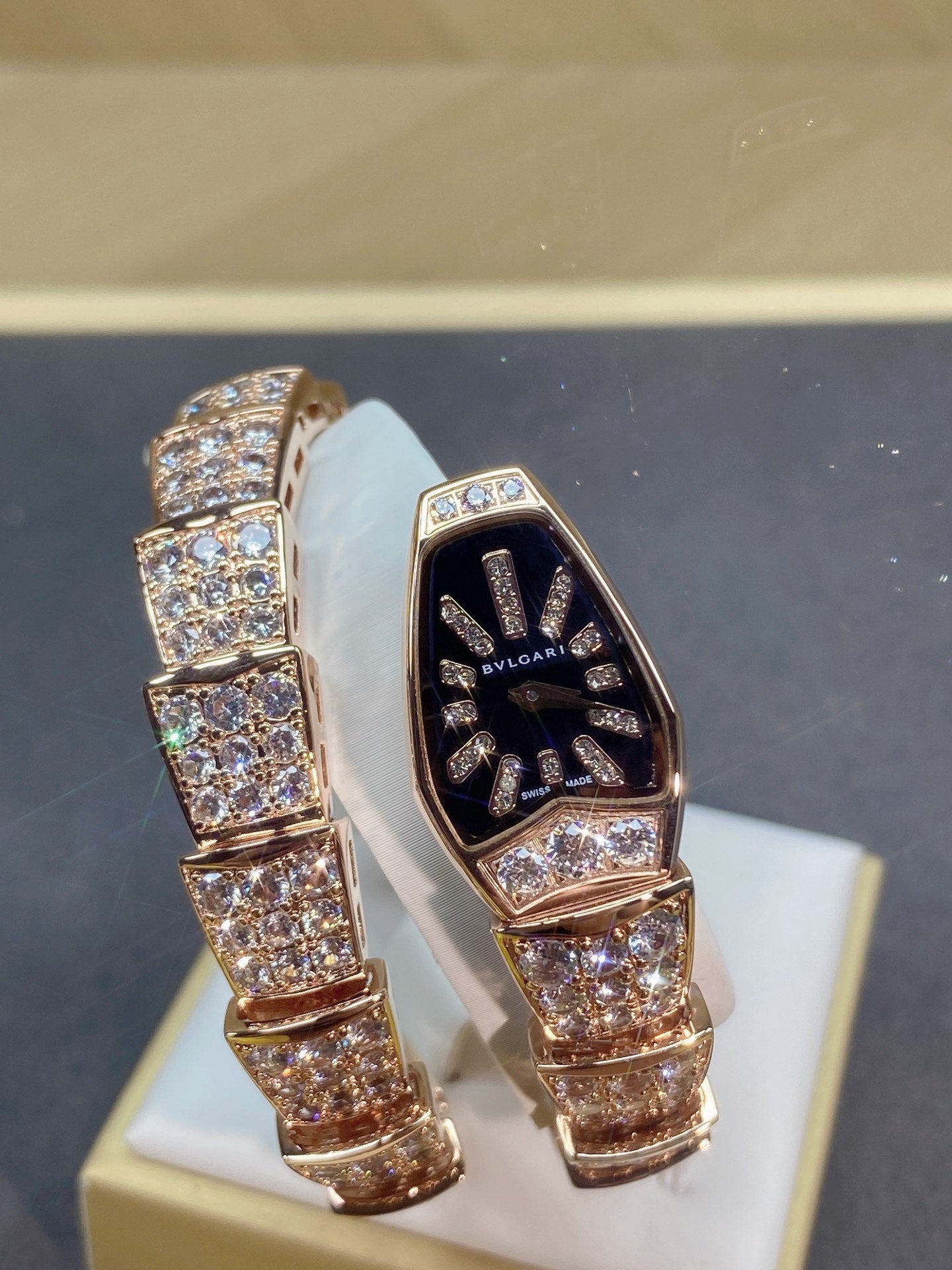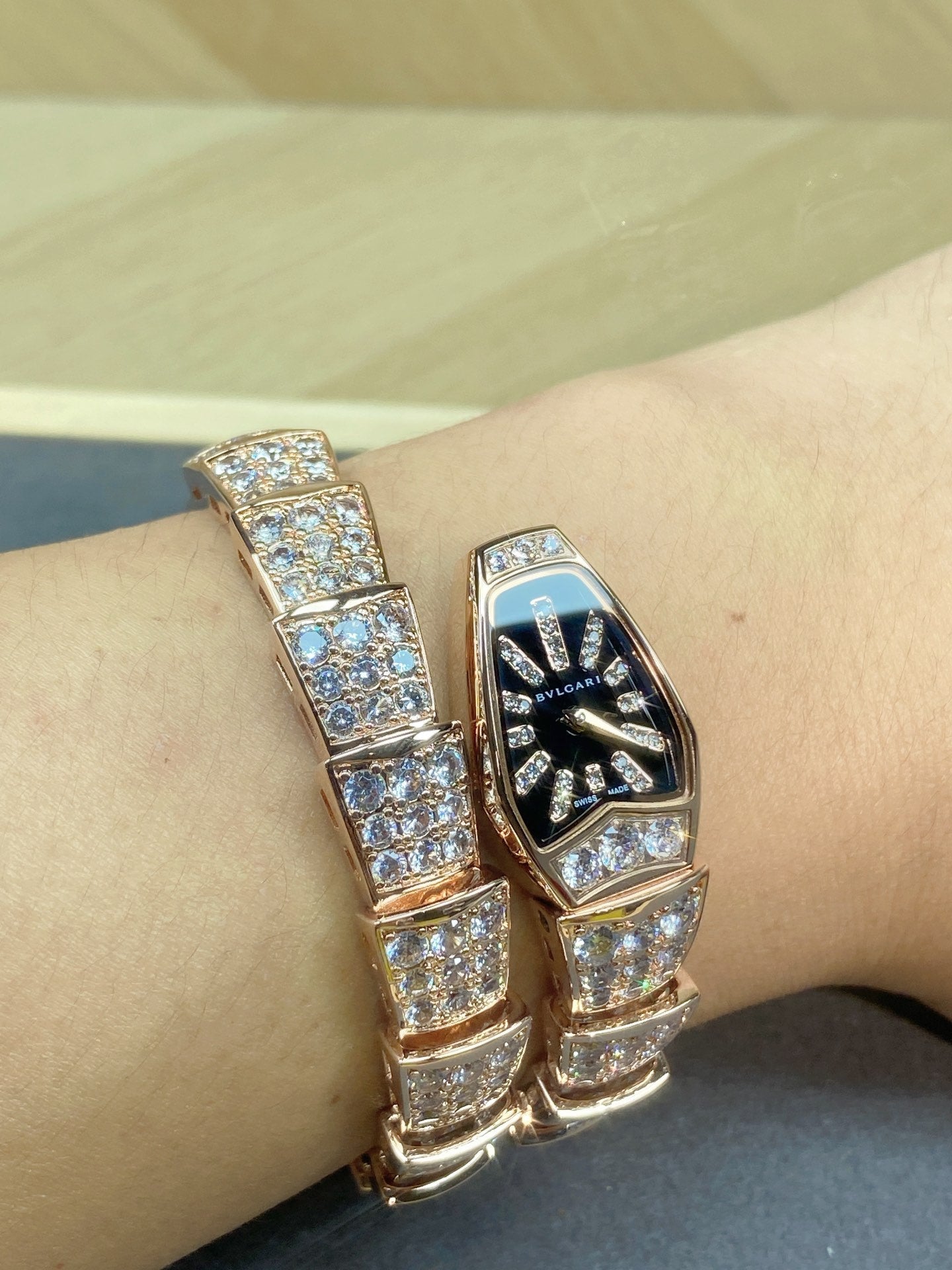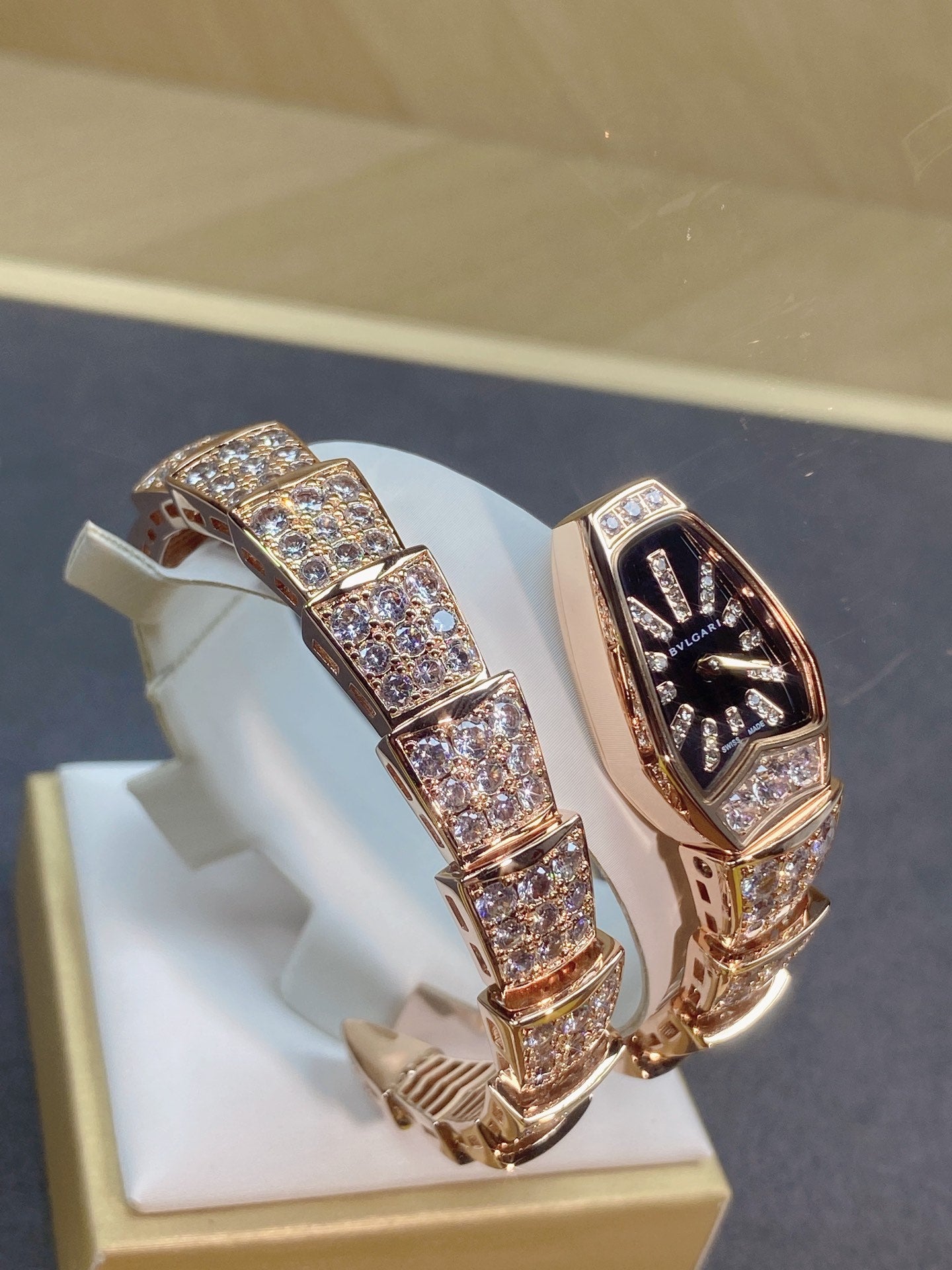 SERPENTI JEWELRY ALL ROSE GOLD WITH DIAMOND BLACK DIAL