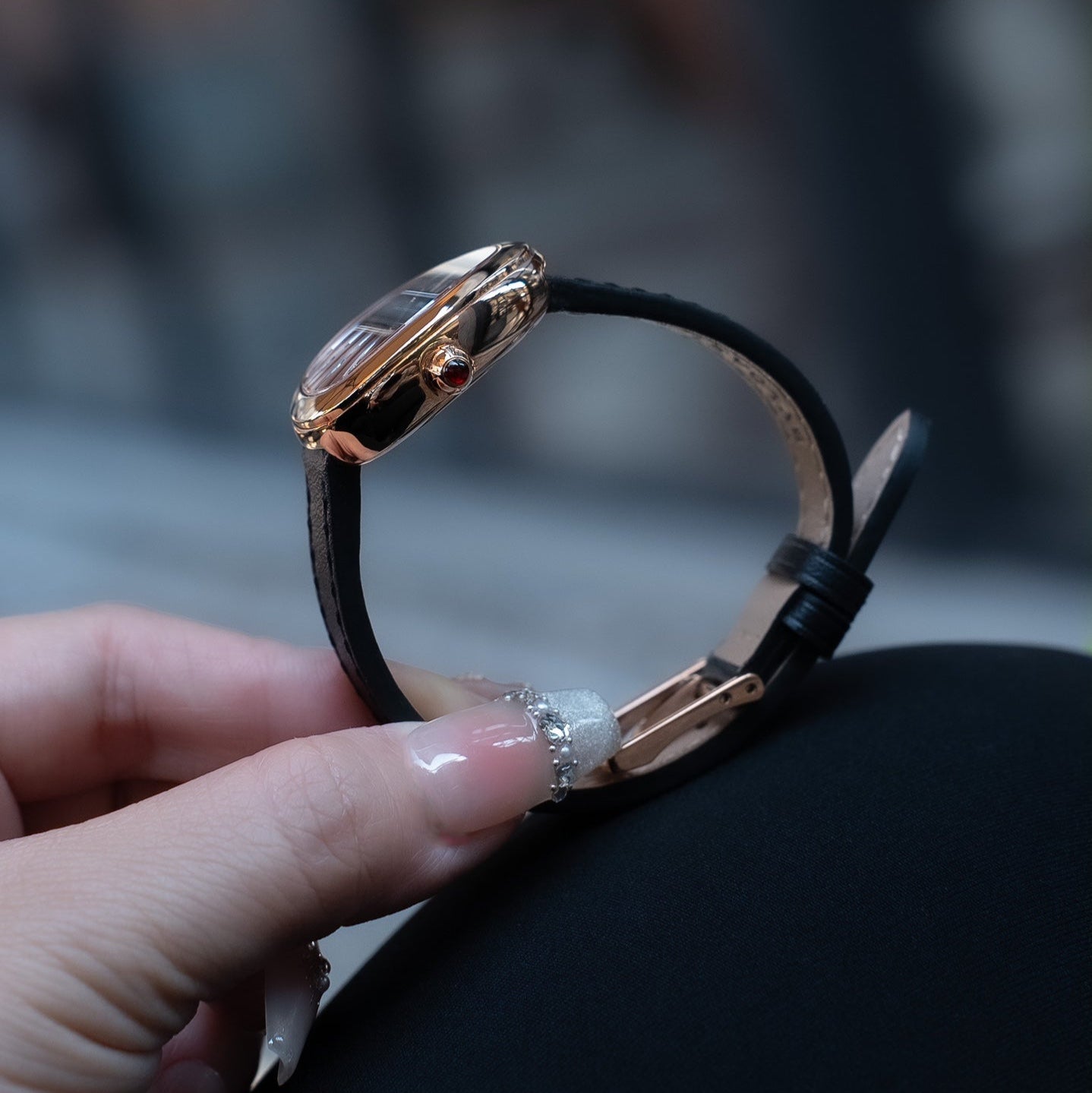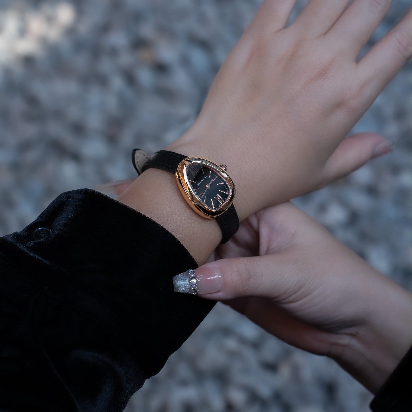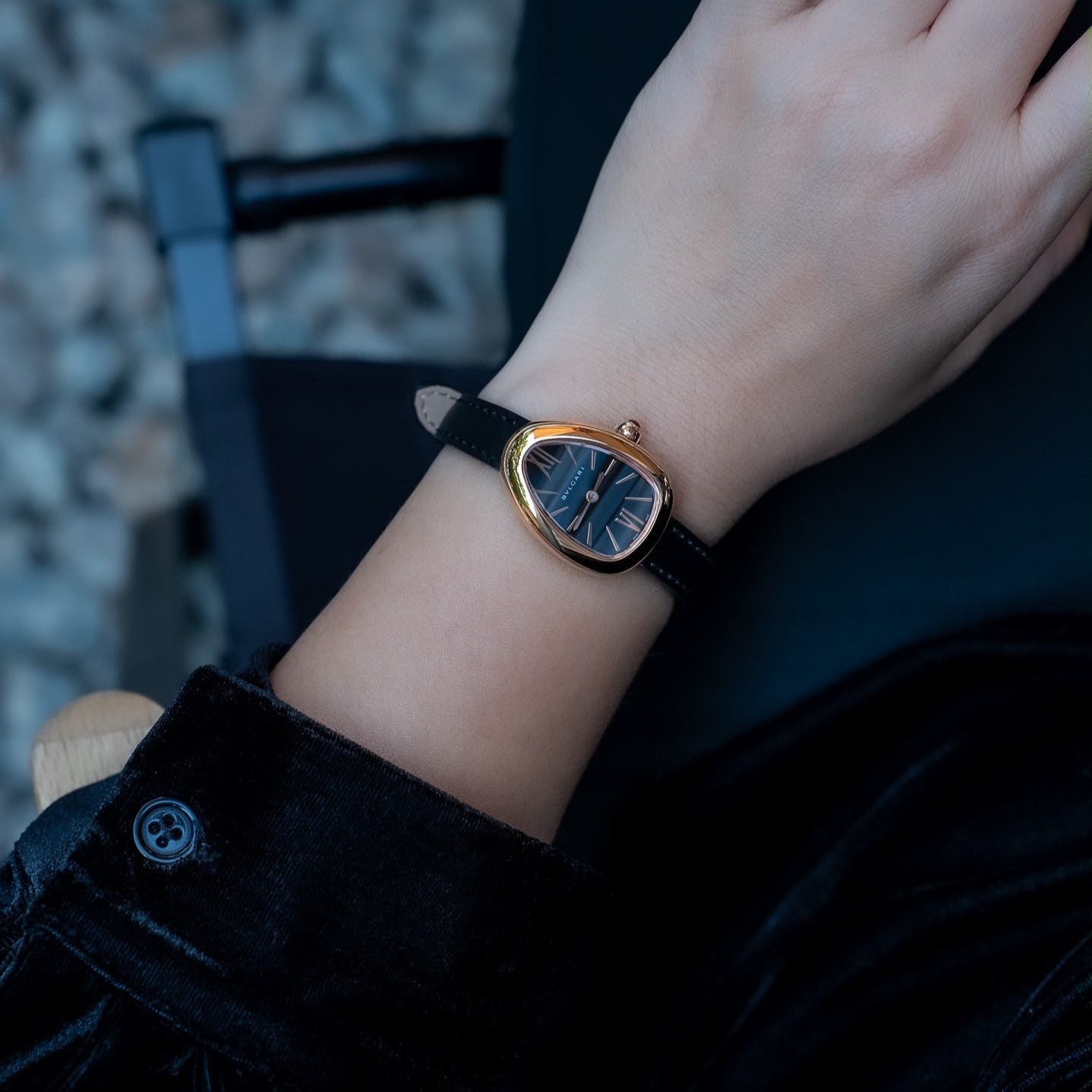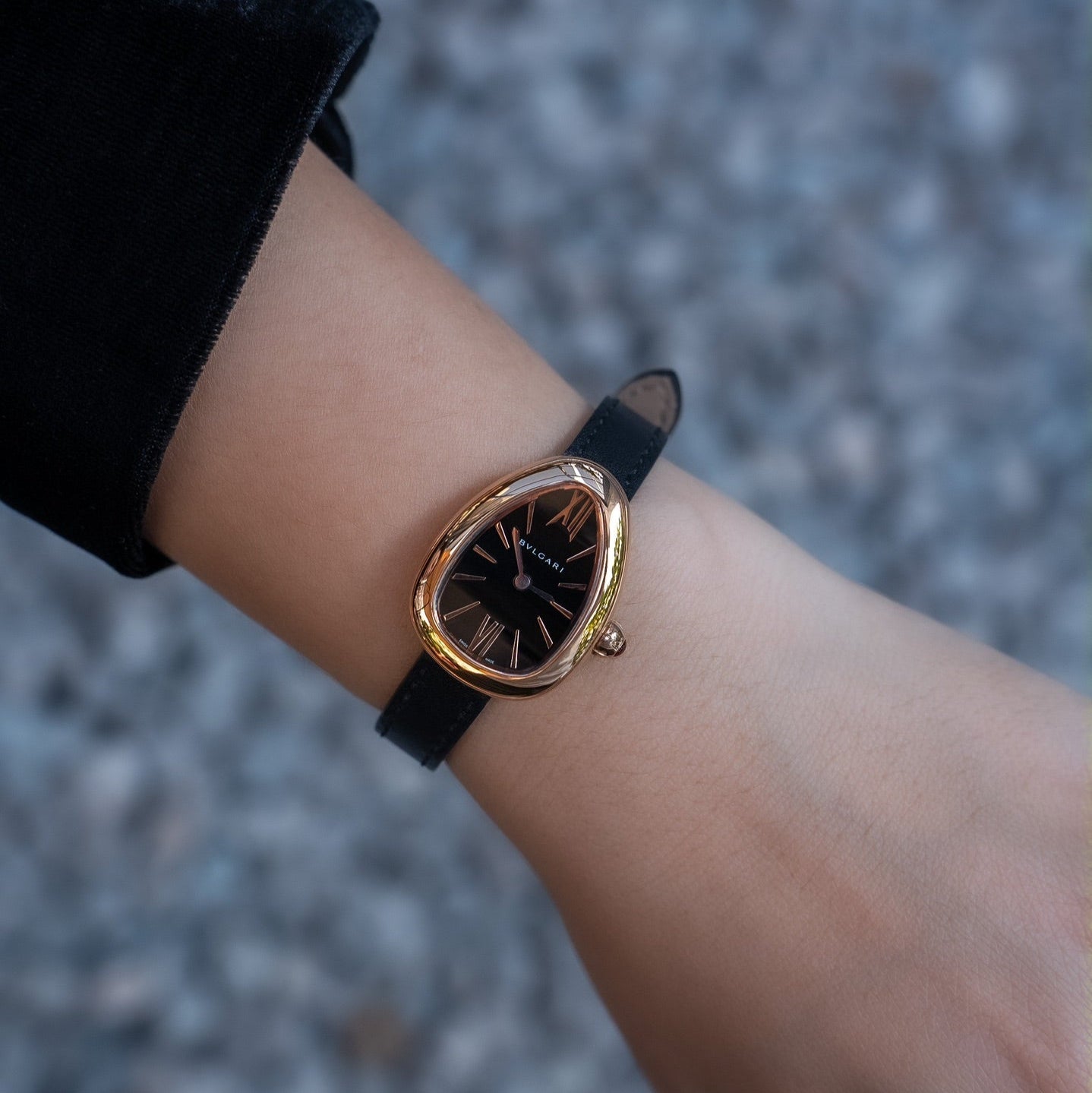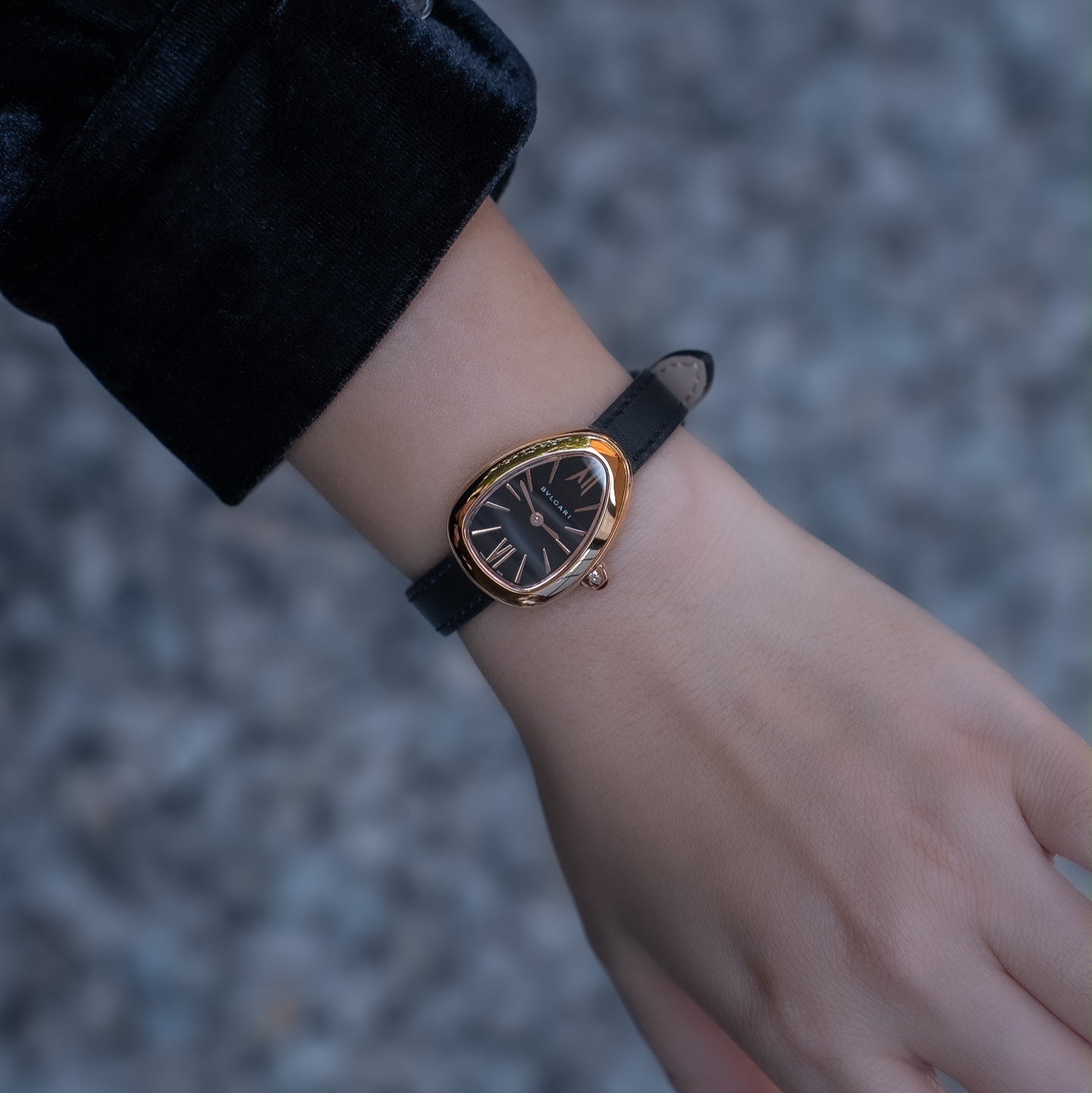 SERPENTI ROSE GOLD CASE BLACK LEATHER STRAP
