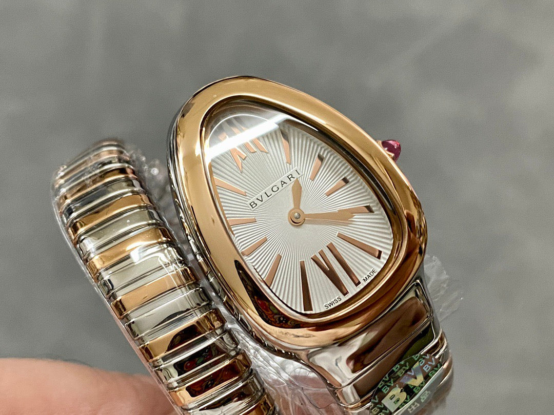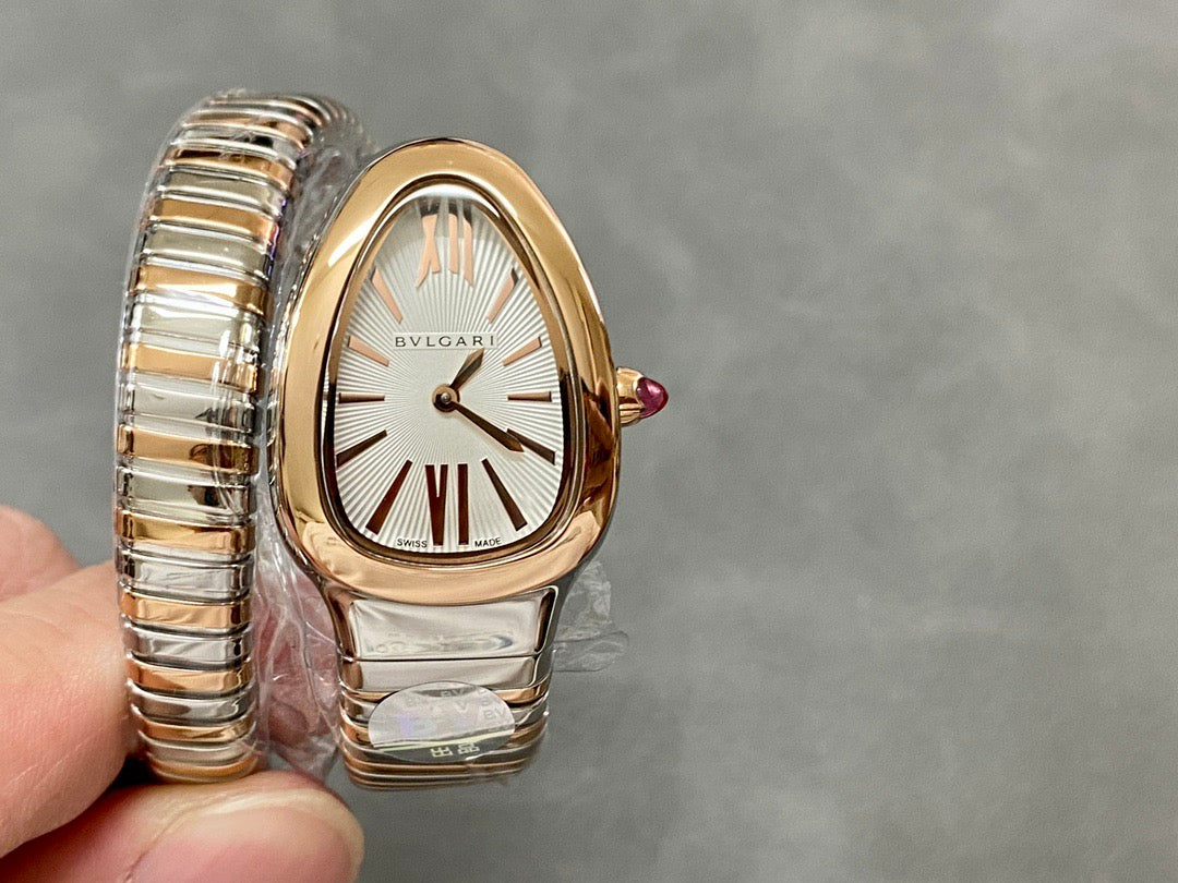 SERPENTI SPIGA PINK GOLD SILVER CERAMIC WHITE DIAL