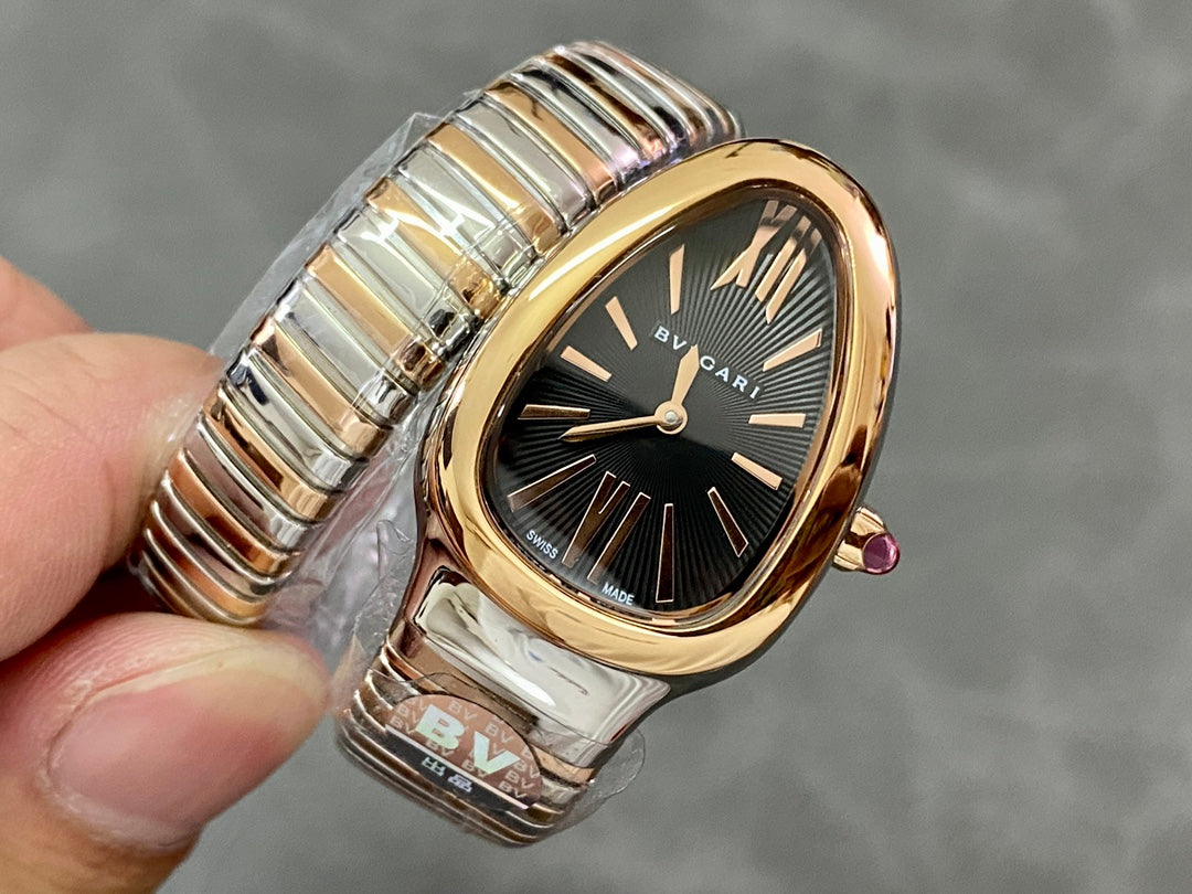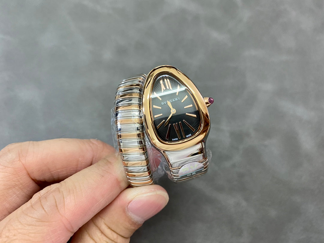 SERPENTI TUBOGAS QUARTZ ROSE GOLD AND STEEL CASE BLACK DIAL