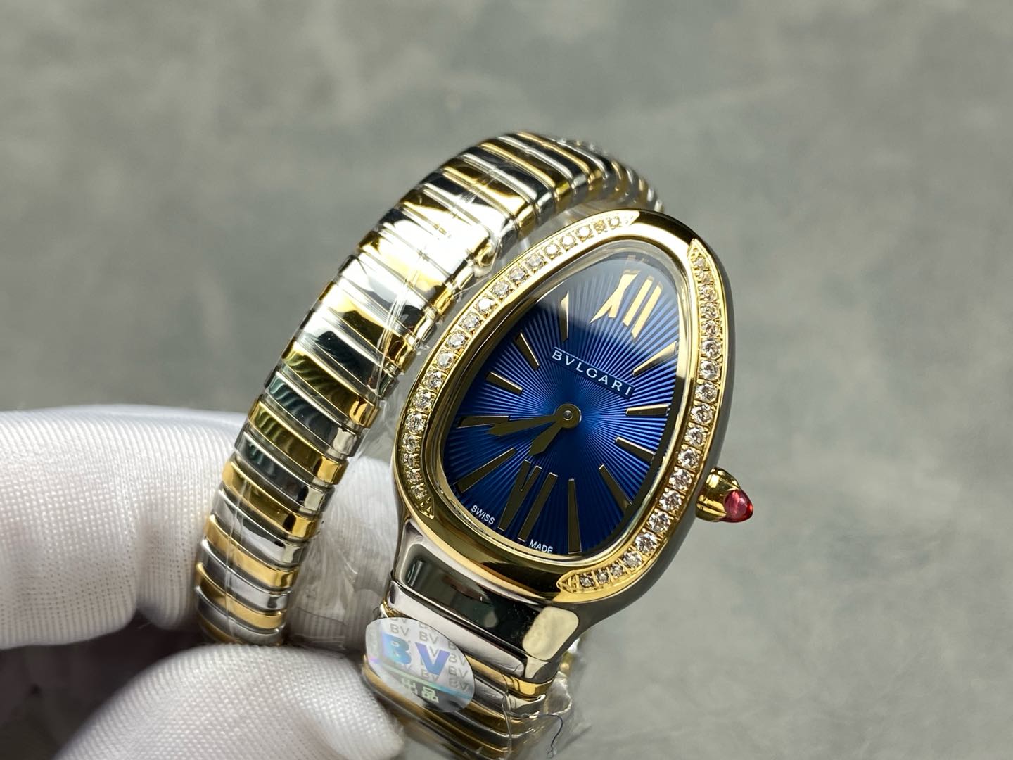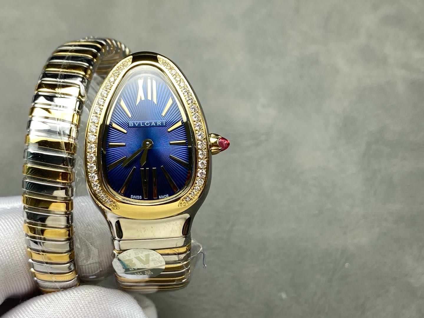 SERPENTI TUBOGAS QUARTZ TWO TONE GOLD STEEL BLUE DIAL