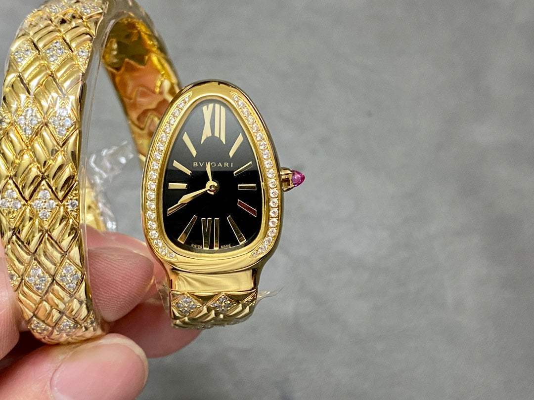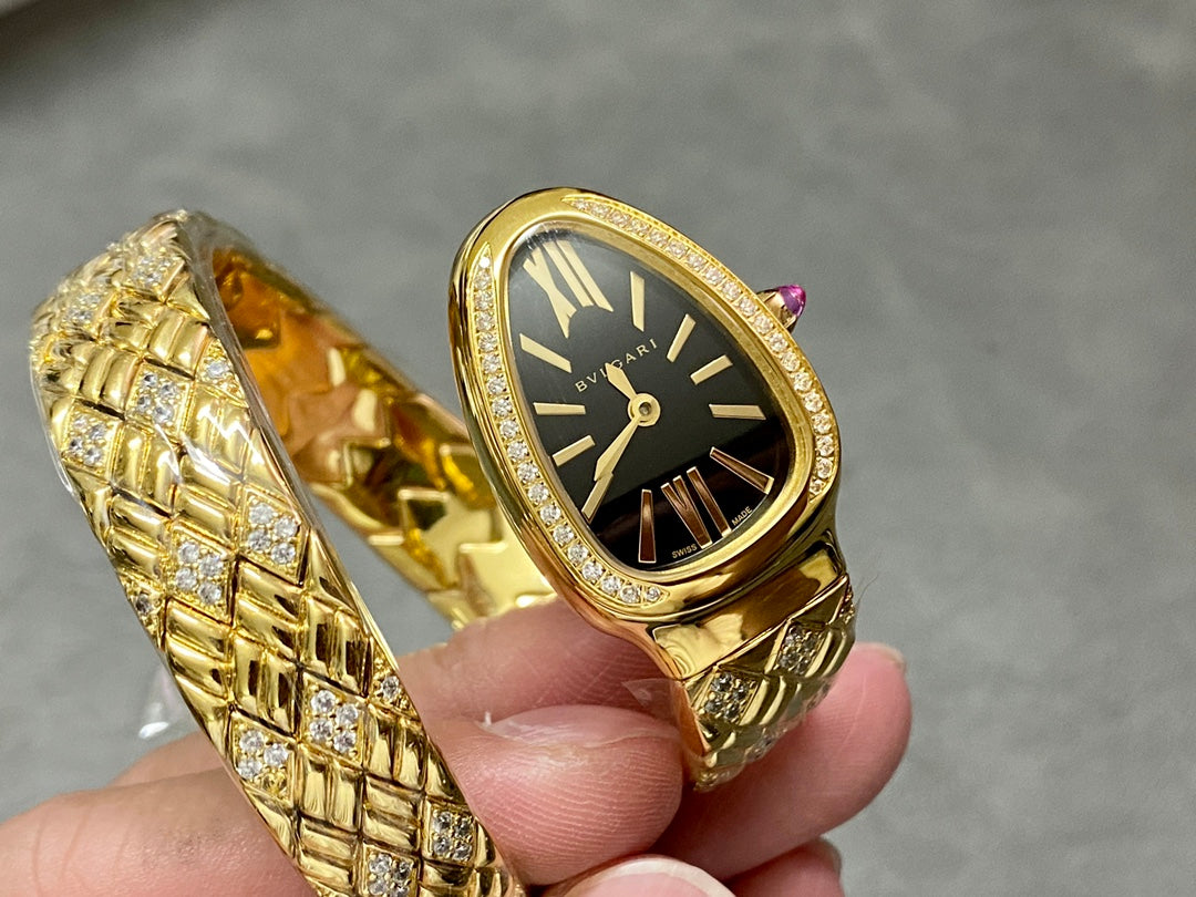 SERPENTI TUBOGAS QUARTZ YELLOW GOLD BLACK DIAL