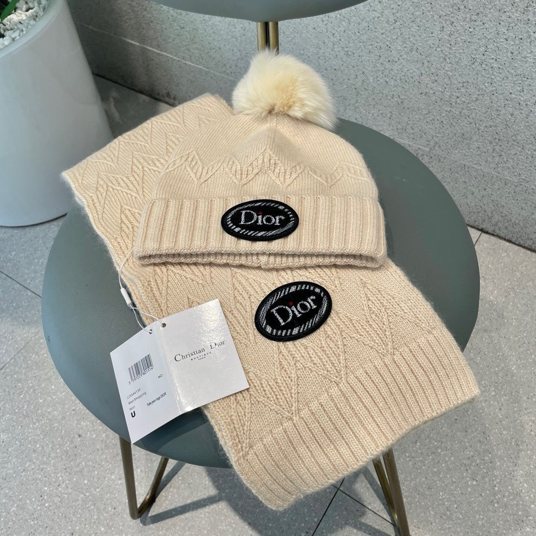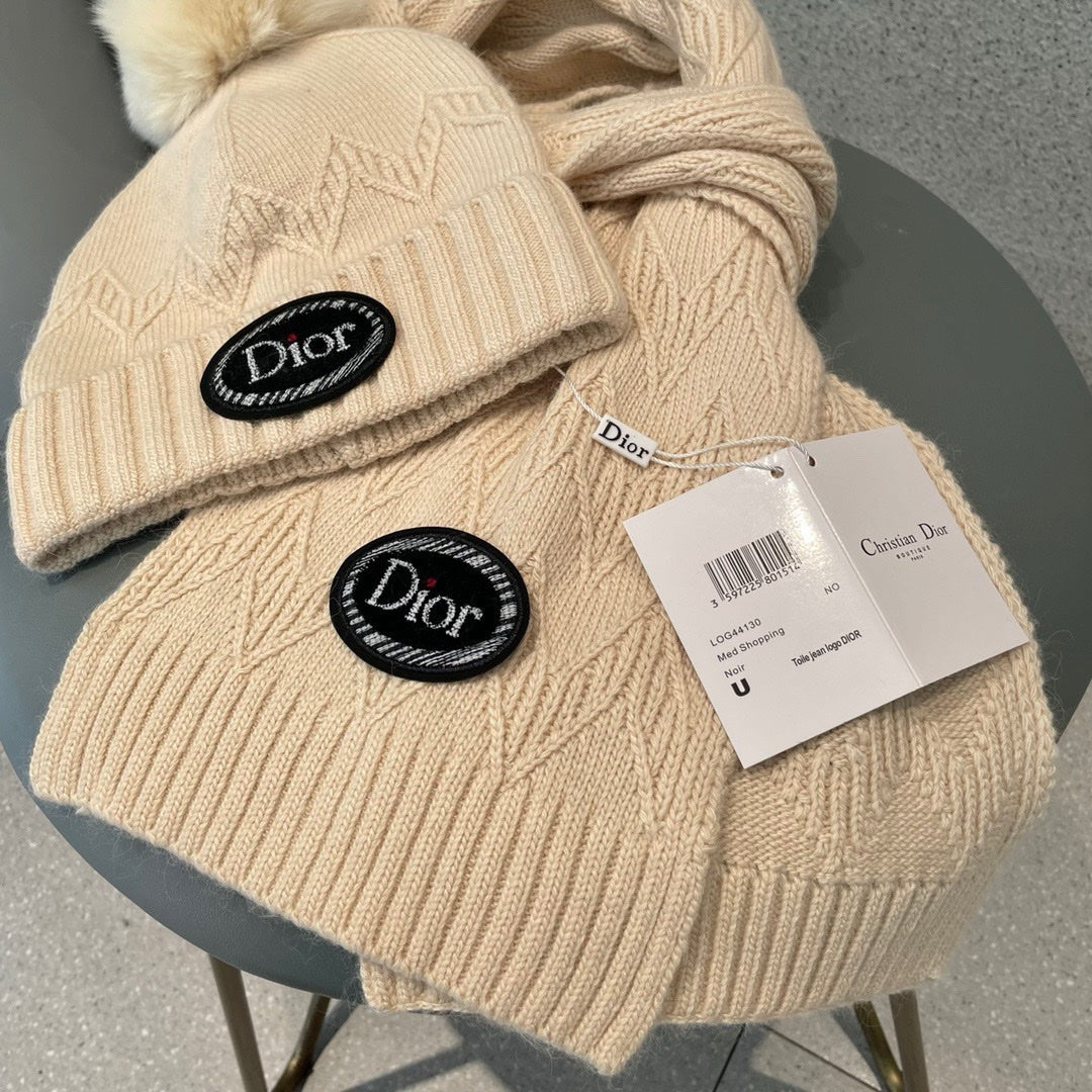 SET KNITTED SCARF AND HAT IN BEIGE WOOL AND FOX FUR 434632