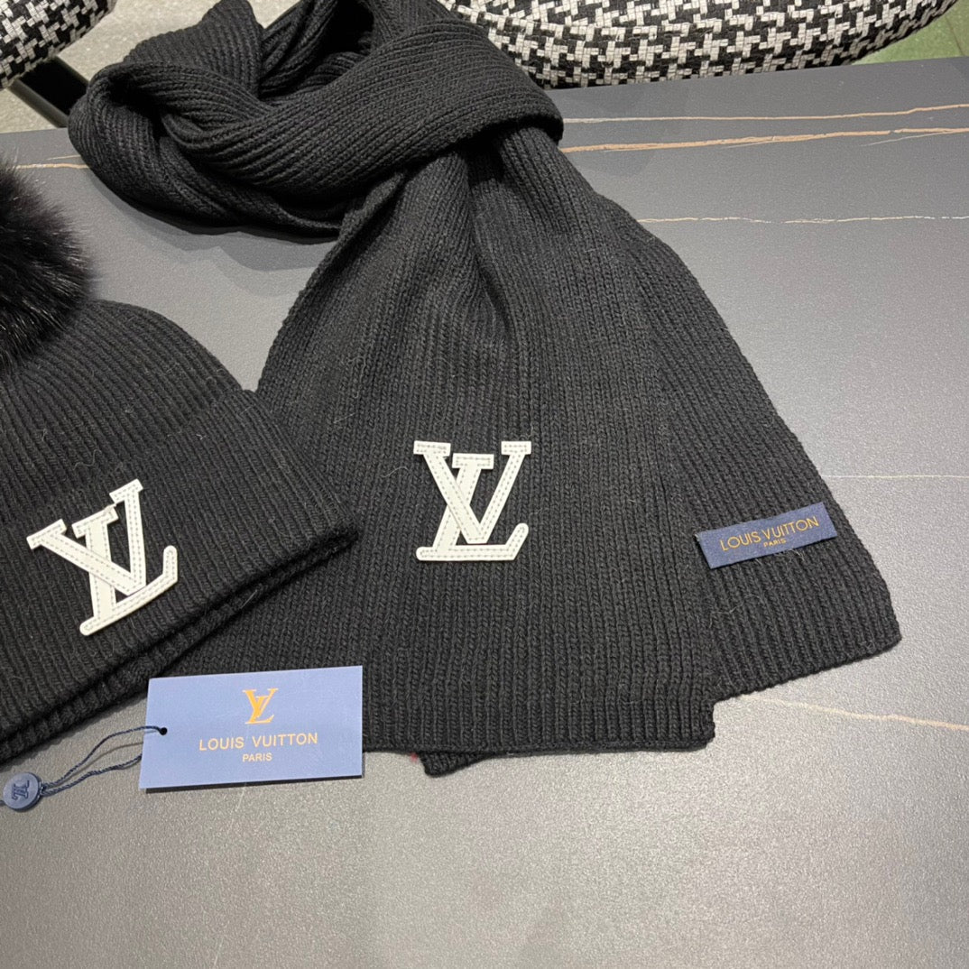 SET SCARF AND HAT IN BLACK WOOL AND FOX FUR 414799