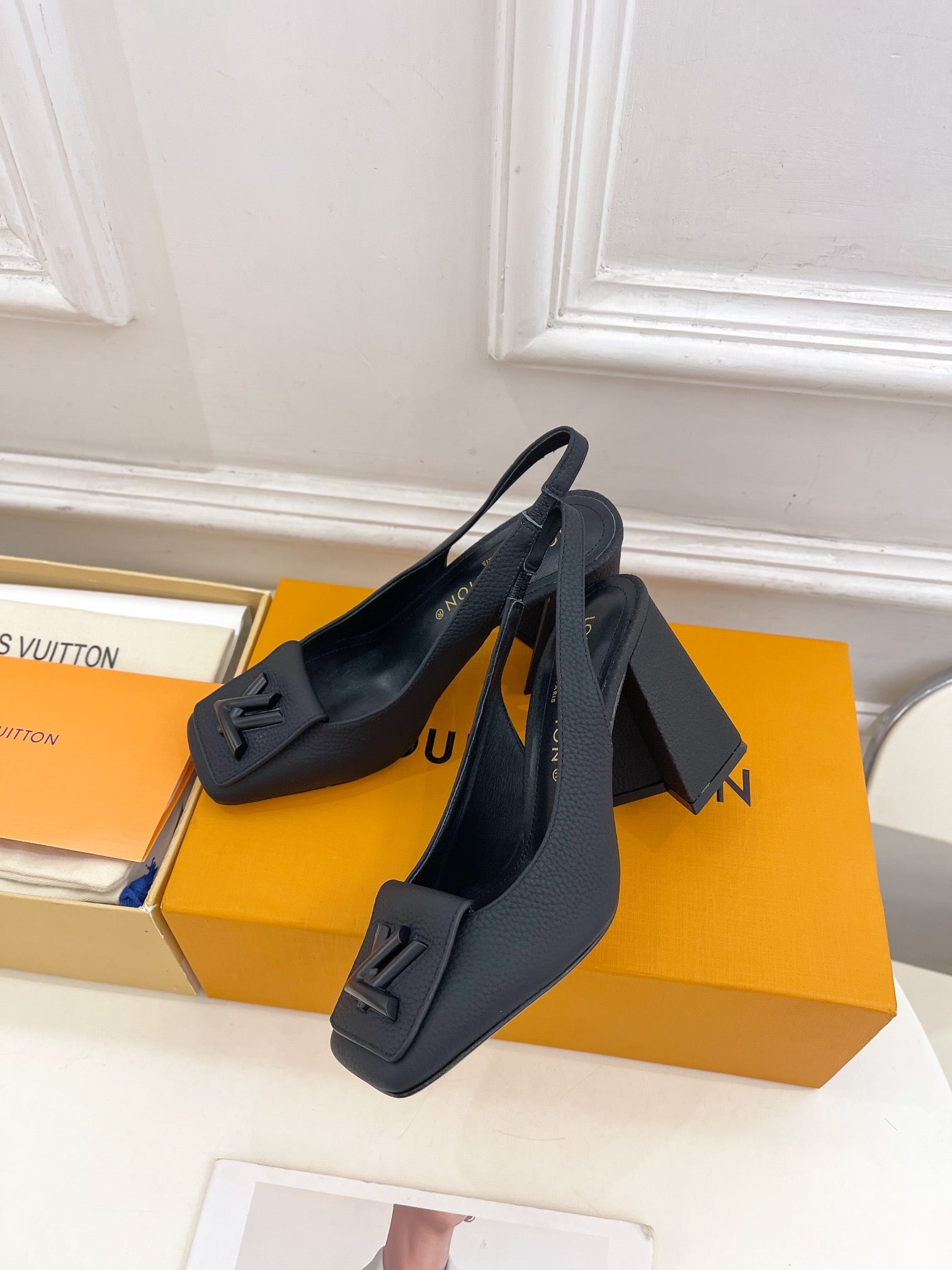 SHAKE SQUARE-TOE BLOCK HEEL 9 CM SANDALS IN BLACK PEPPLE CALFSKIN