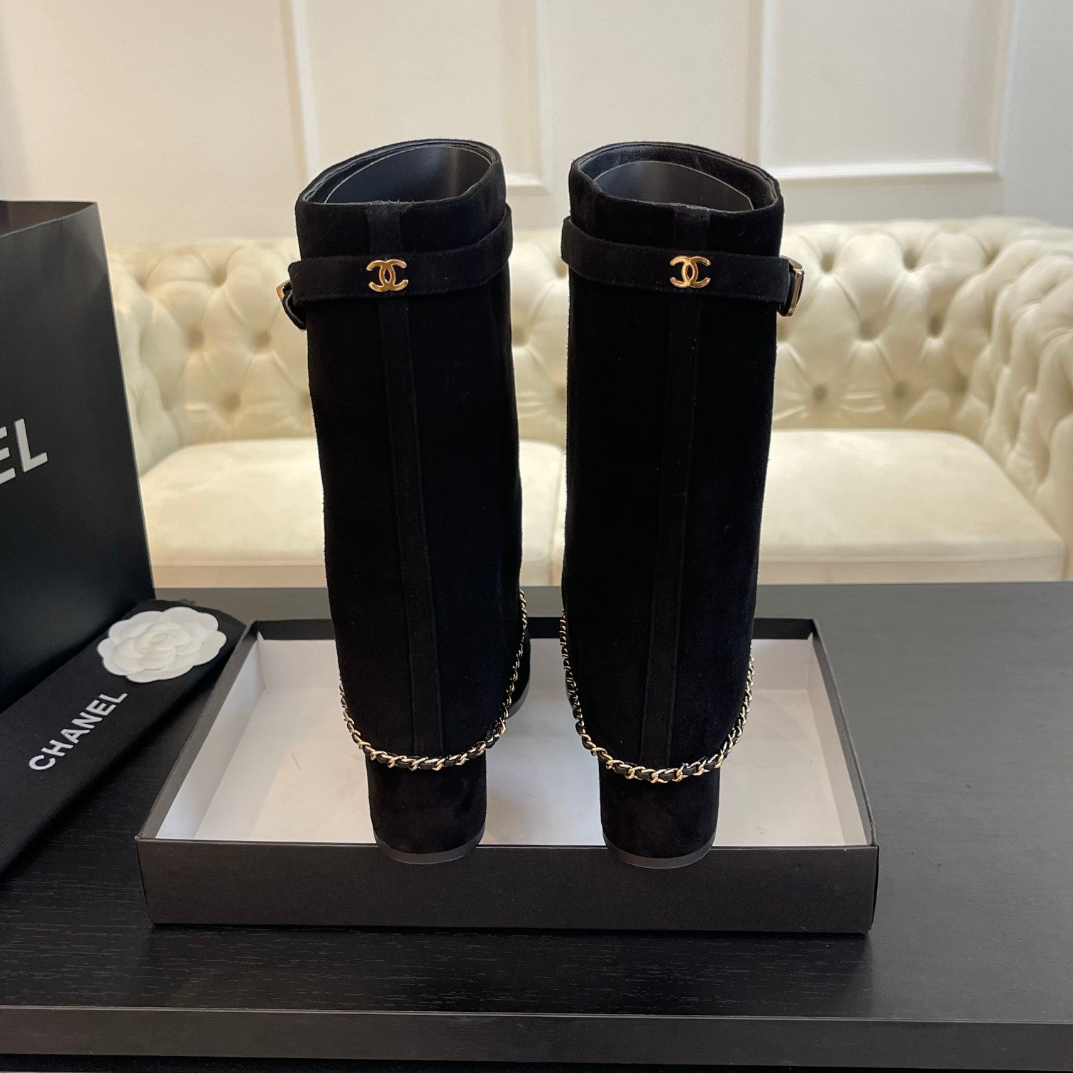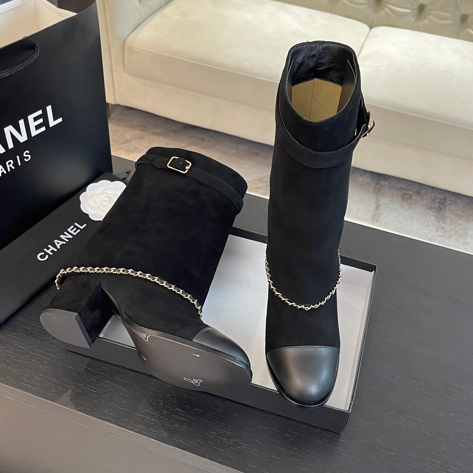 SHORT BOOTS 6.5 CM IN BLACK SUEDE AND CALFSKIN