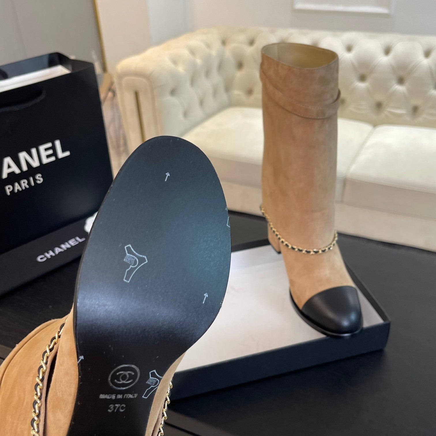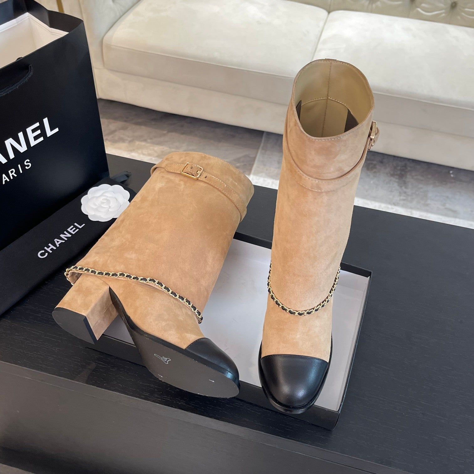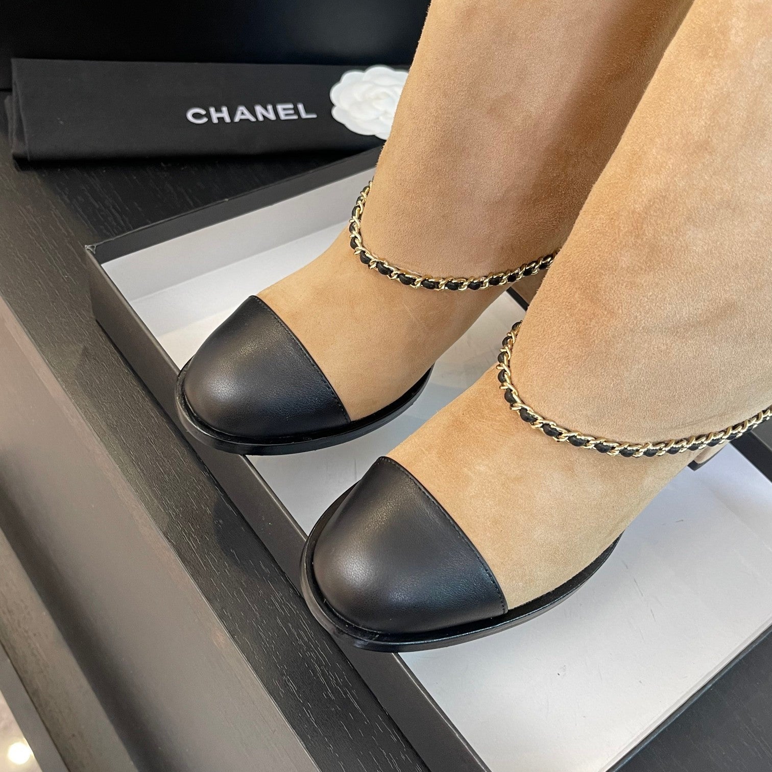 SHORT BOOTS 6.5 CM IN CIDER BROWN SUEDE AND BLACK CALFSKIN