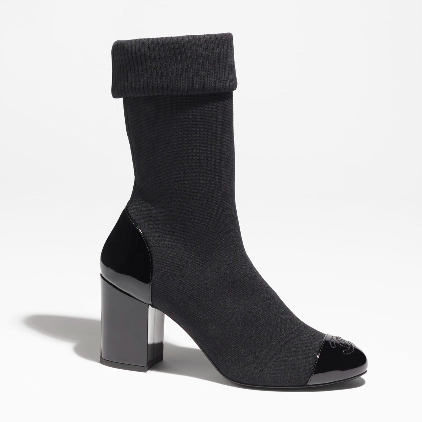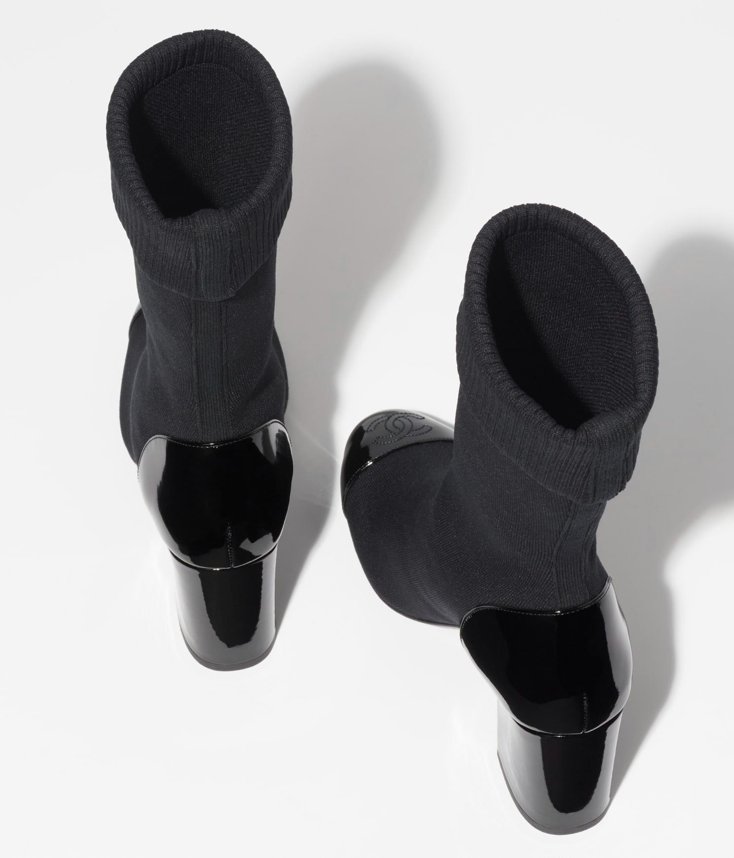 SHORT BOOTS BLACK KNIT PATENT CALFSKIN