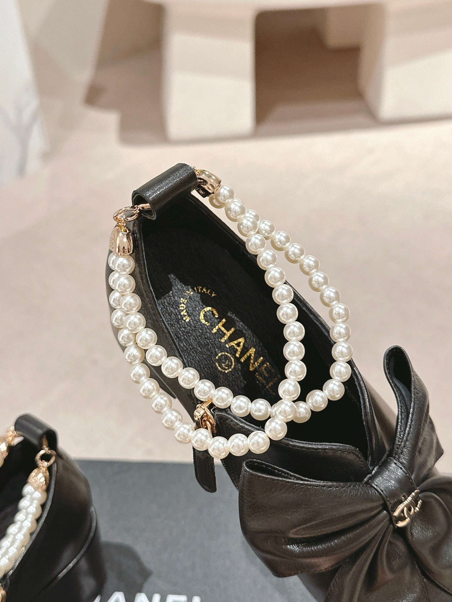 SHORT BOOTS IN BLACK SHEEPSKIN WITH BOW