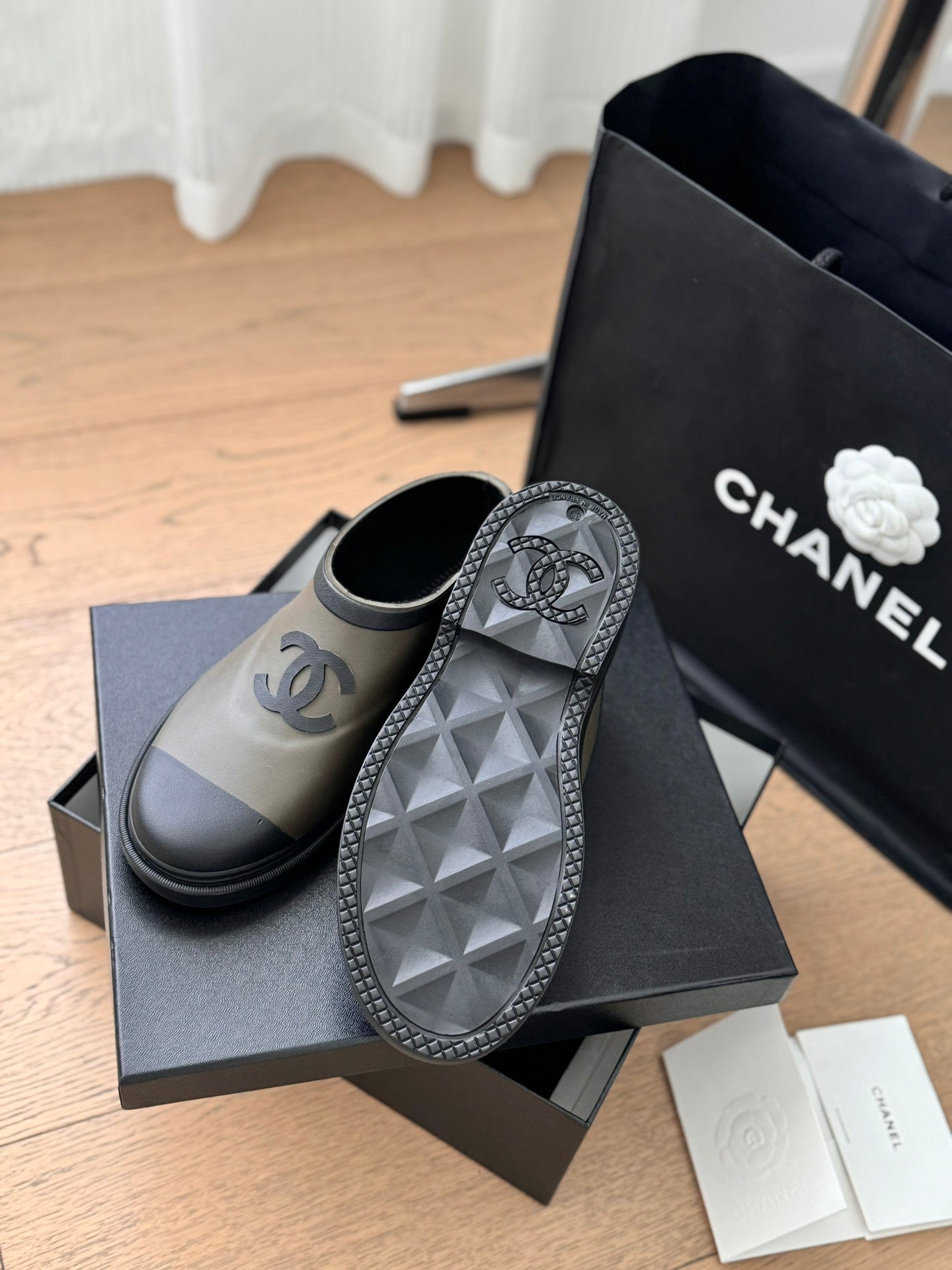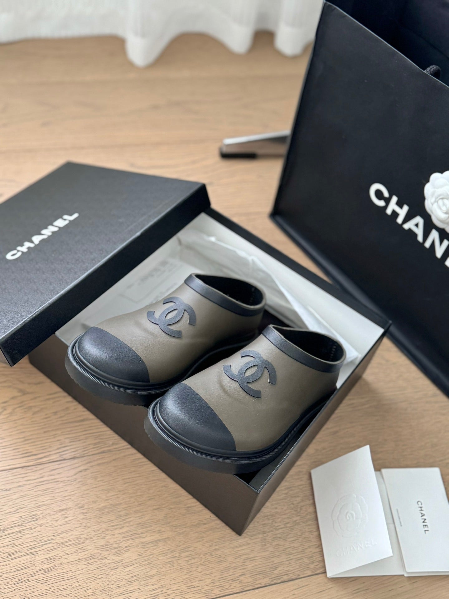 SHORT BOOTS IN MOCHA BROWN MIX BLACK RUBBER