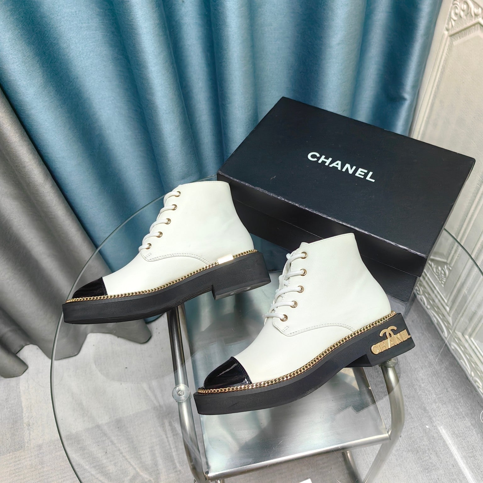 SHORT BOOTS IN WHITE MIX GLOSSY BLACK SHEEPSKIN