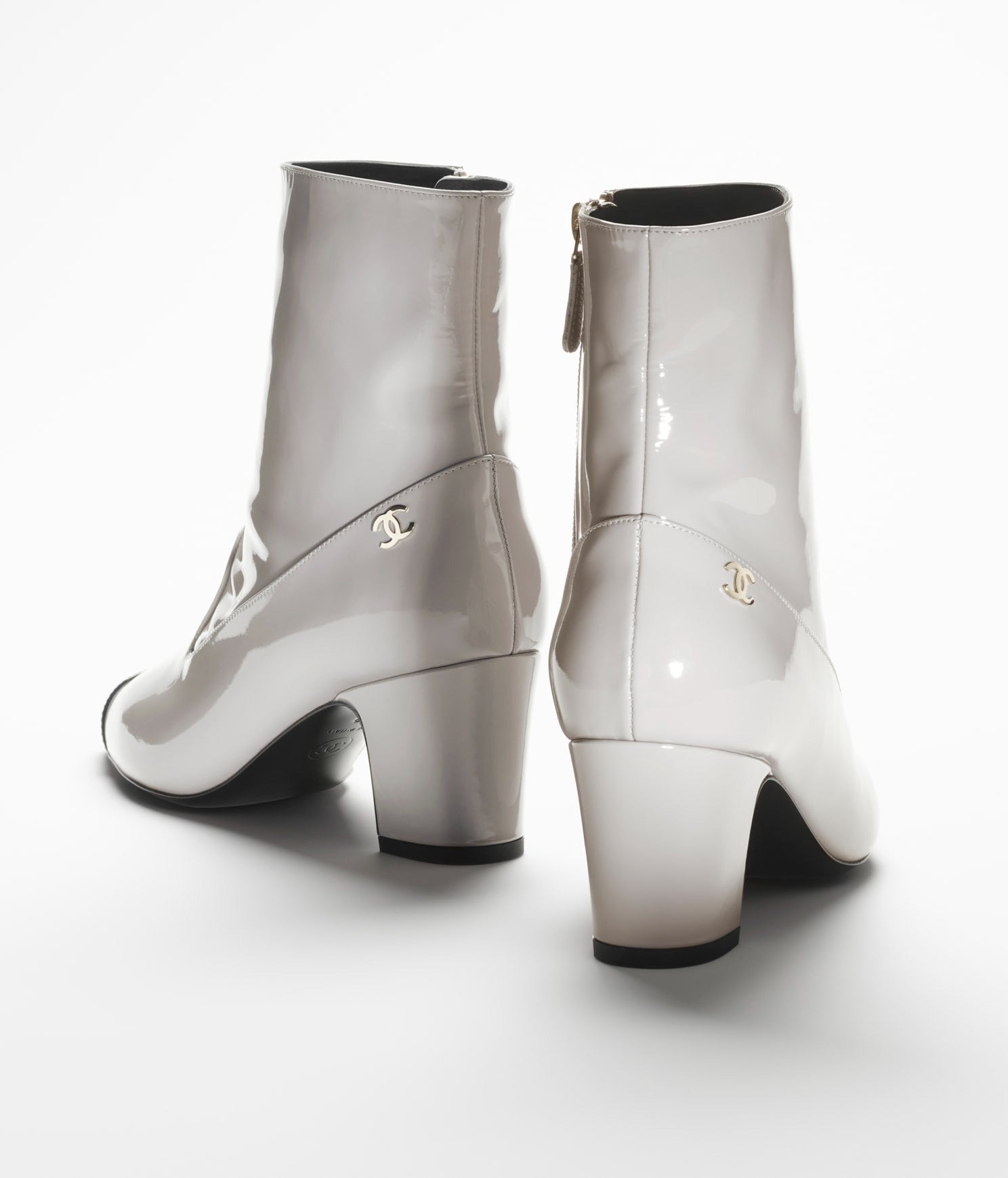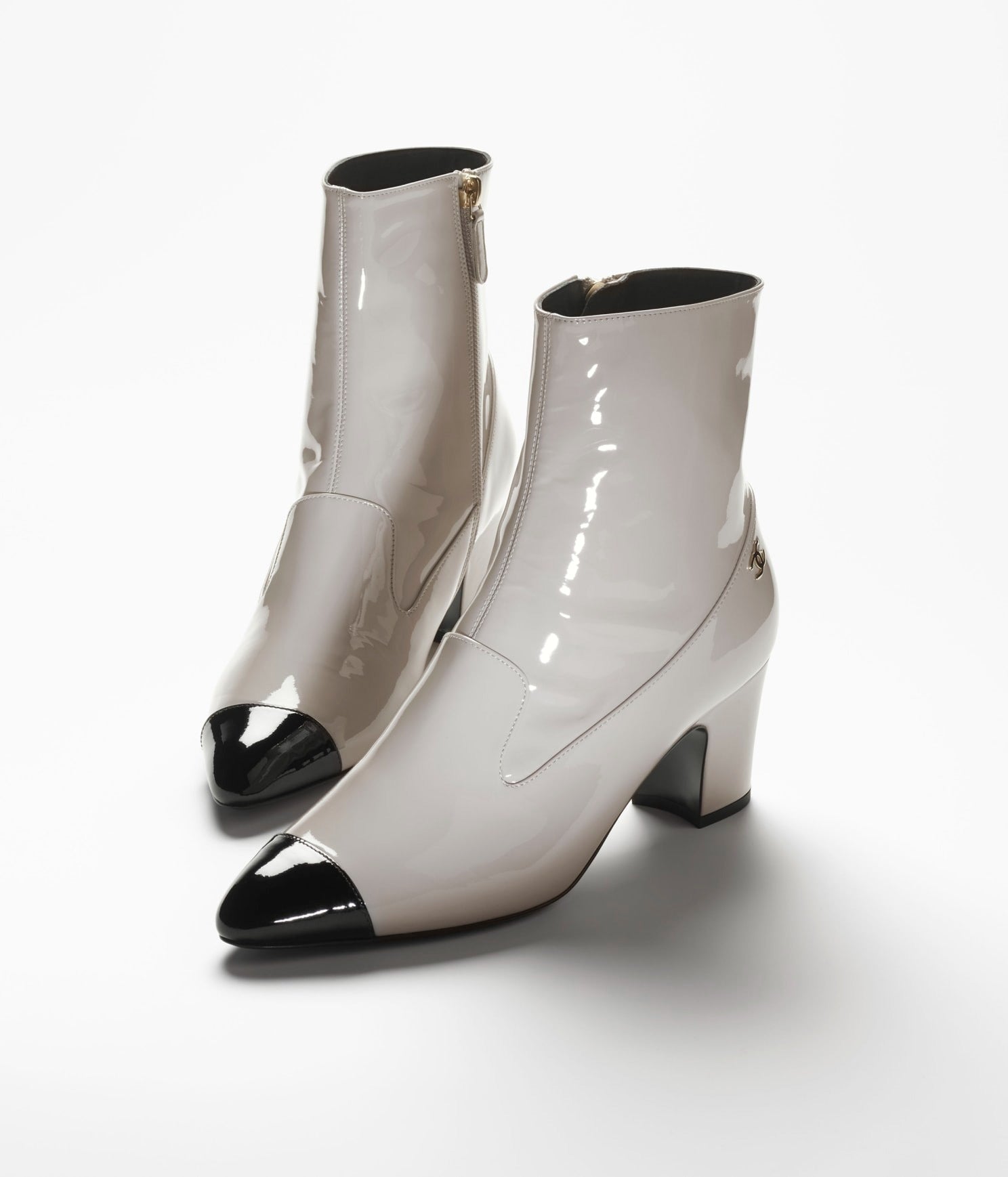 SHORT BOOTS LIGHT GRAY BLACK PATENT CALFSKIN