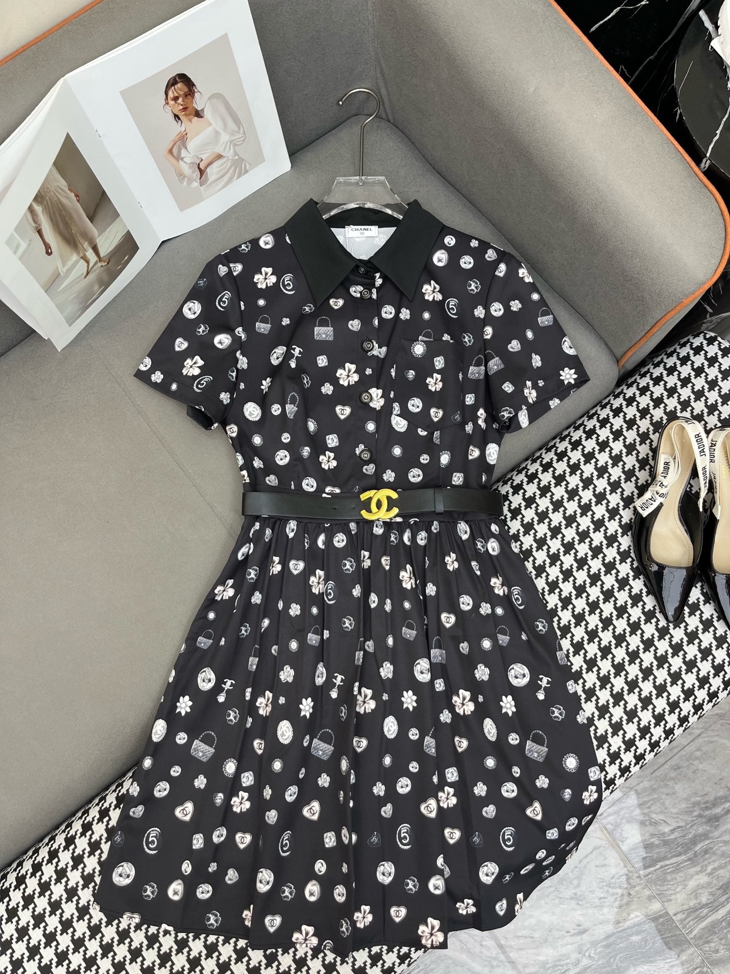 SHORT-SLEEVE BUTTON-DOWN DRESS WITH SIGNATURE LOGO BELT