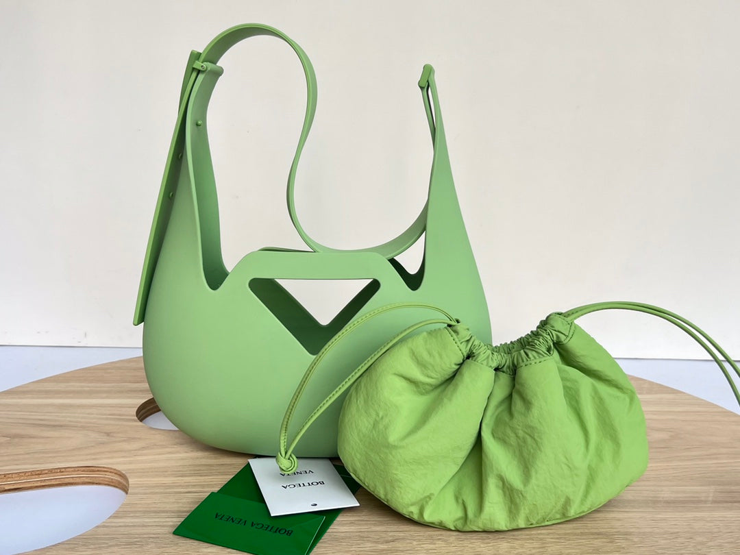 SHOULDER BAG 27 IN FEIJOA GREEN RUBBER AND NYLON FABRIC