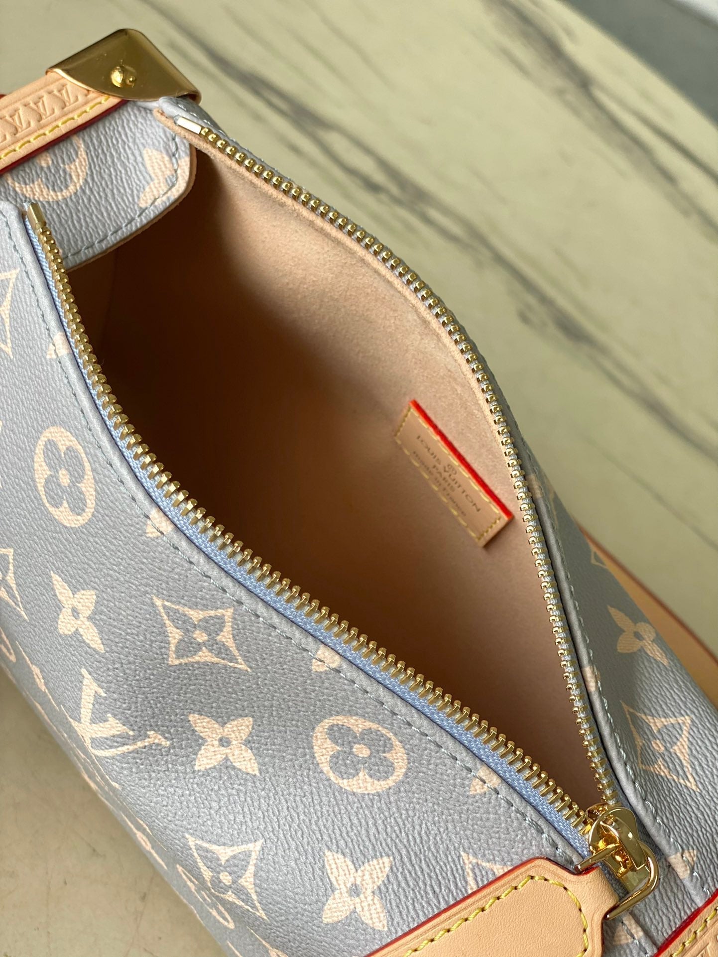 SIDE TRUNK 21 IN GRAY CREAM MONOGRAM TRIANON CANVAS GOLD HARDWARE