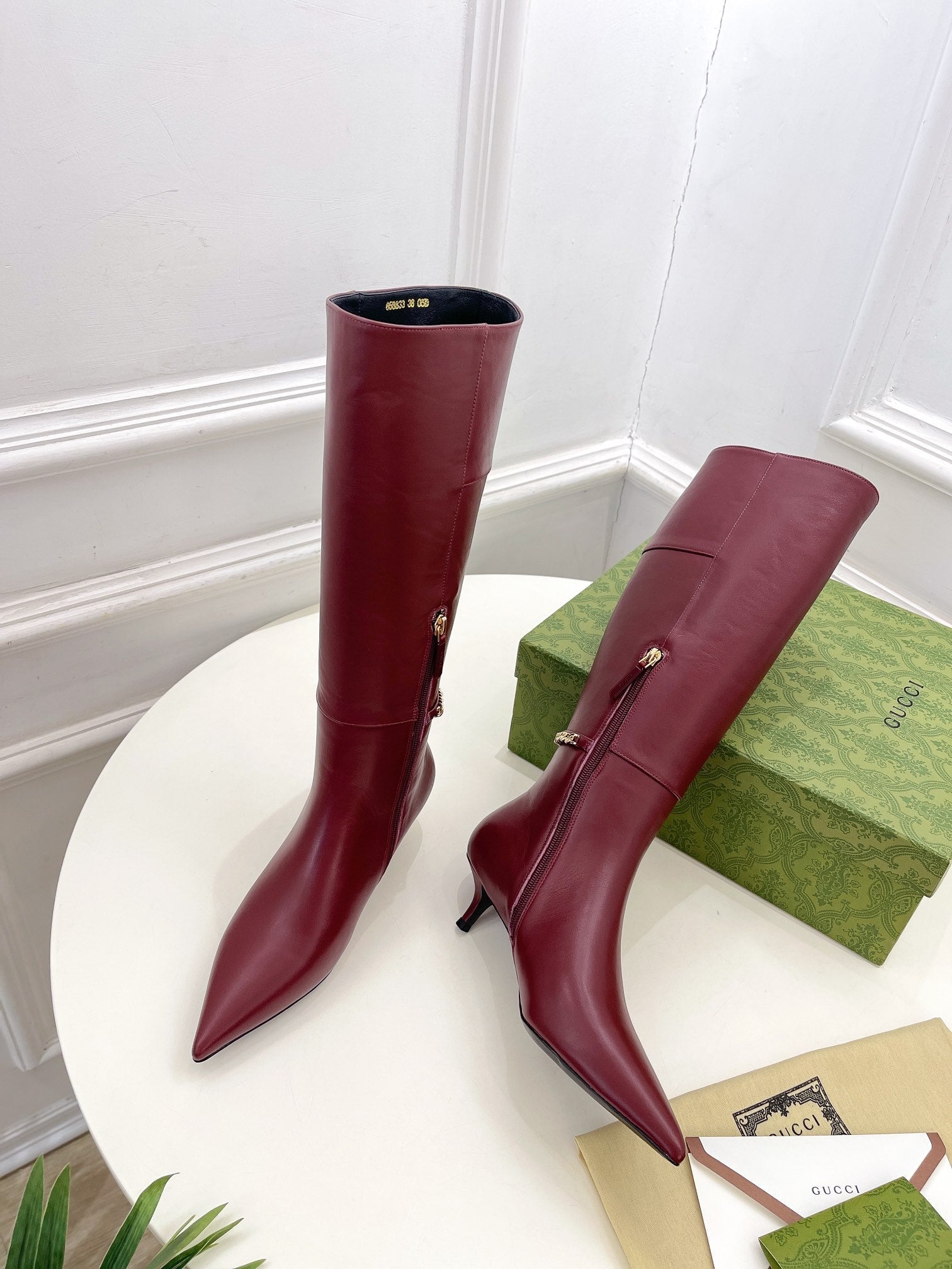 SIGNORIA KNEE BOOTS 4.5CM IN BURGUNDY RED CALFSKIN
