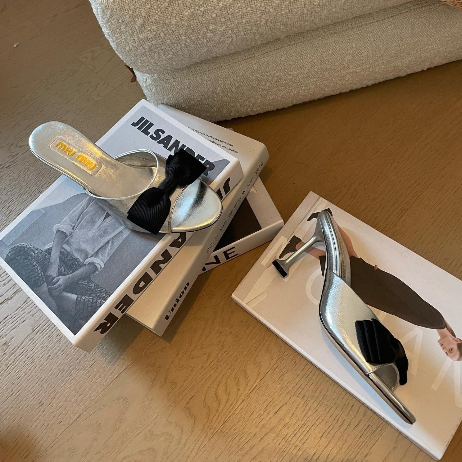 Silver High - Heels With Black Bow Calfskin