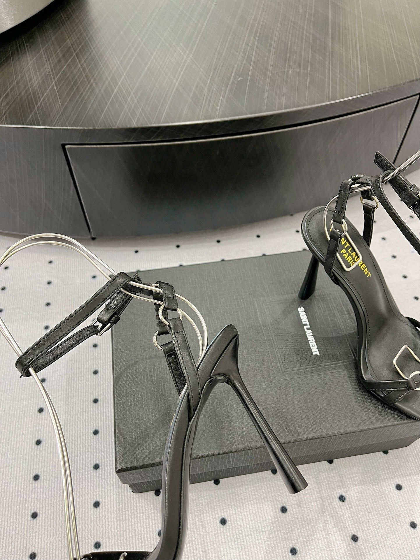 SL ANKLE-BUCKLE HEELED SANDALS BLACK CALFSKIN