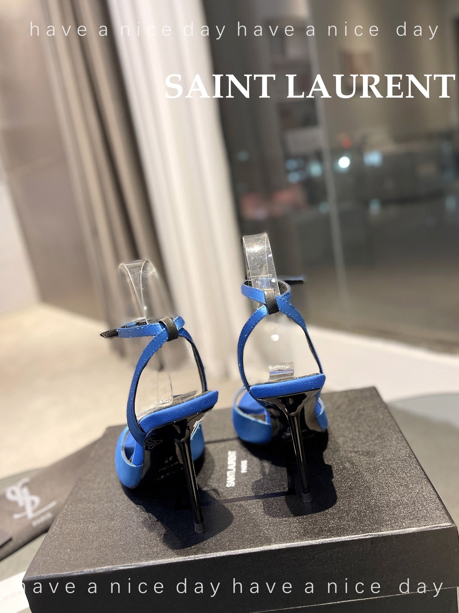 SL AYERS CRYSTAL SANDAL COBALT SATIN