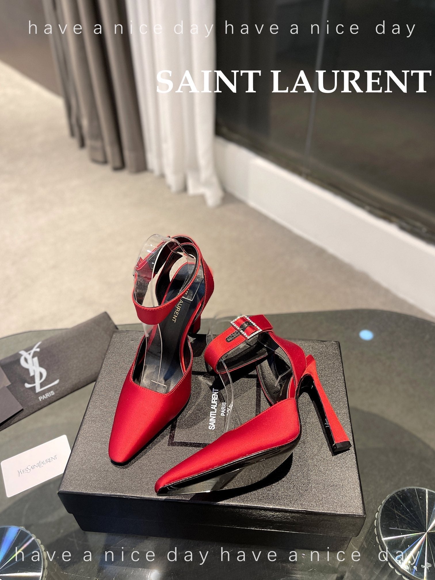 SL FANNY SLINGBACK PUMPS RED SATIN