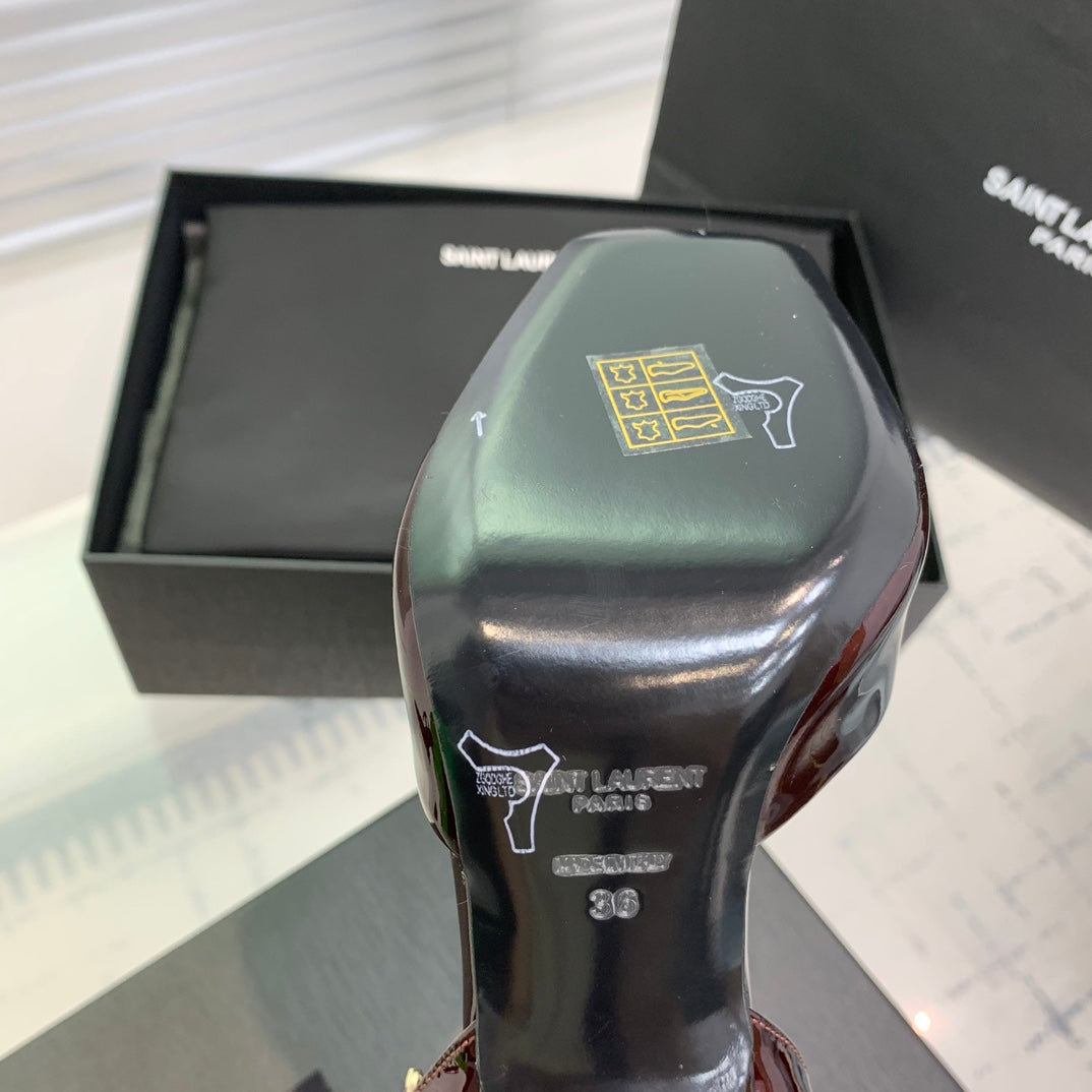 SL FISH MOUTH SANDAL PUMP BERRY POLISHED CALFSKIN