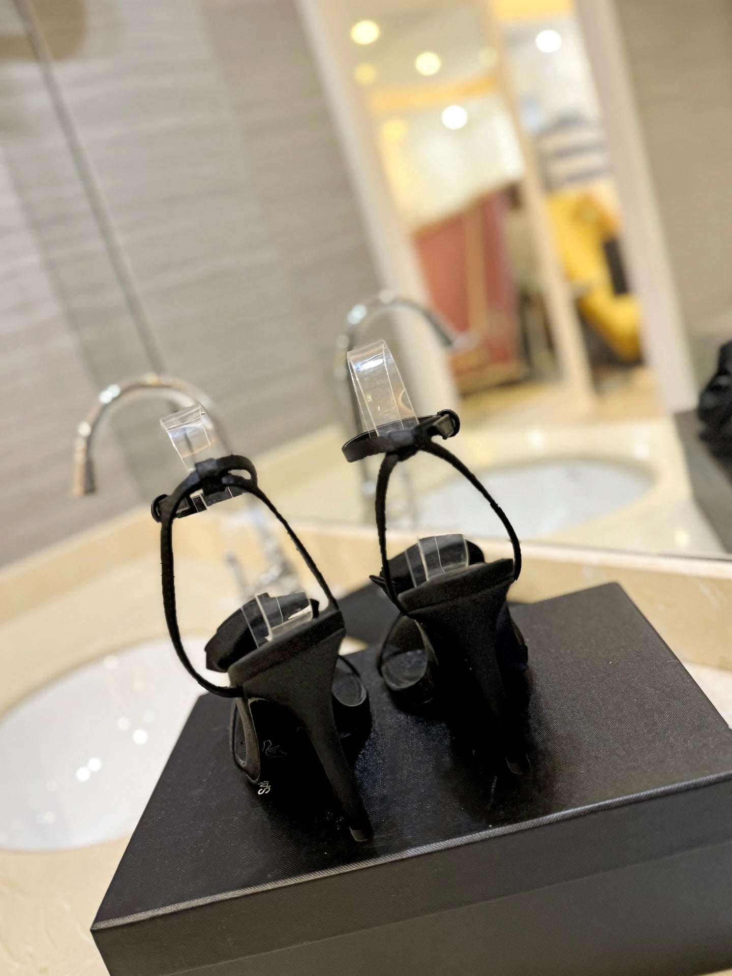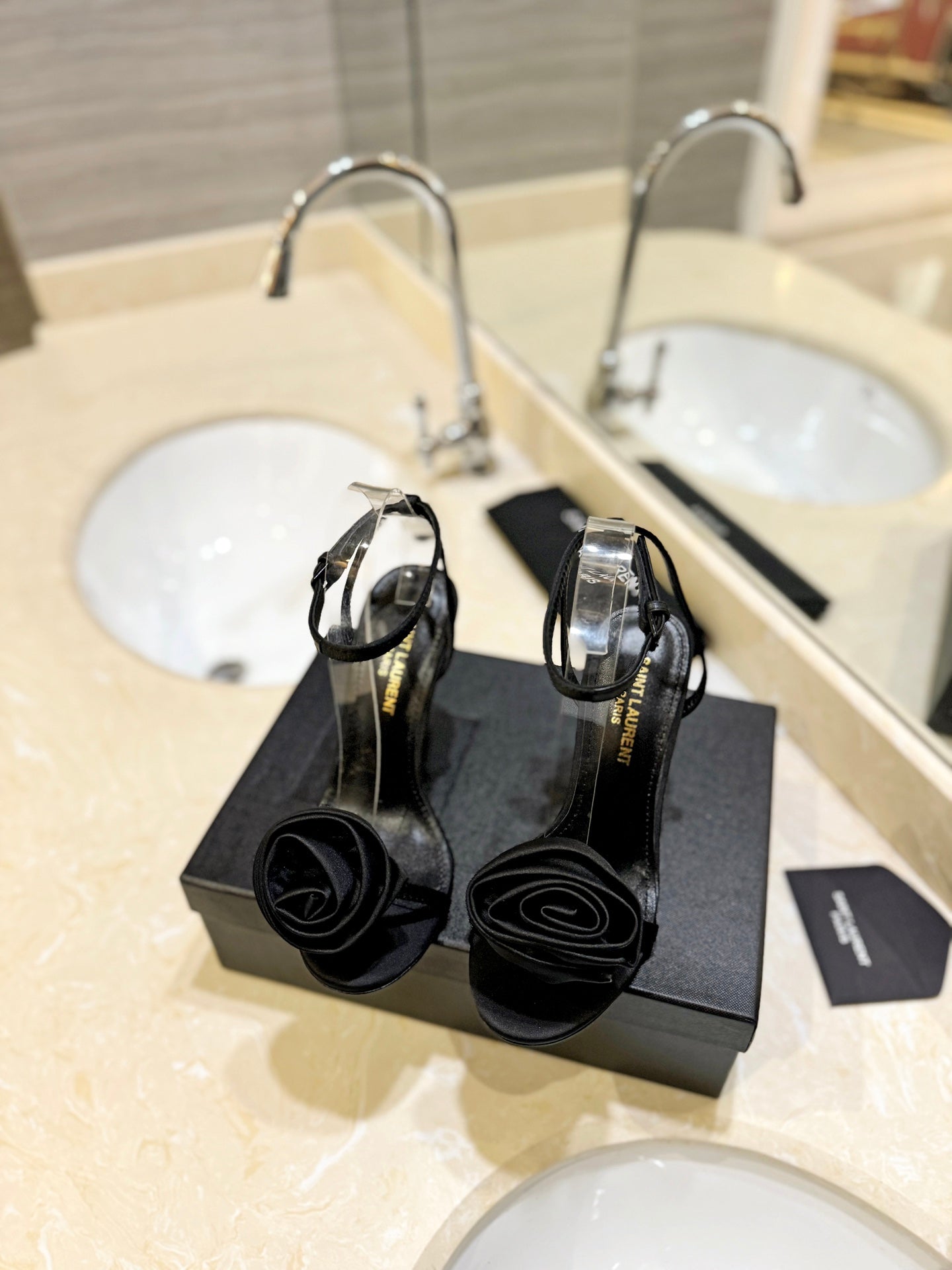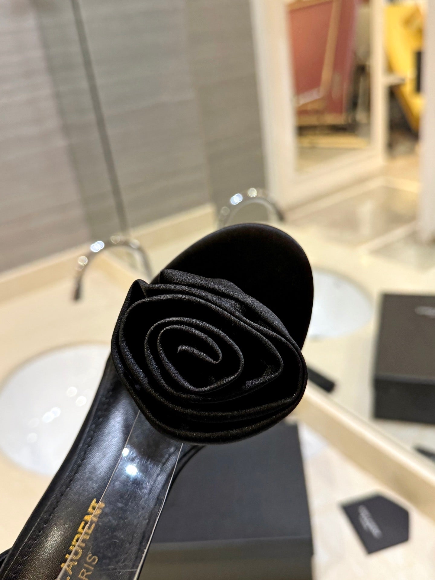 SL IVY FLORAL HEEL SANDALS BLACK SATIN